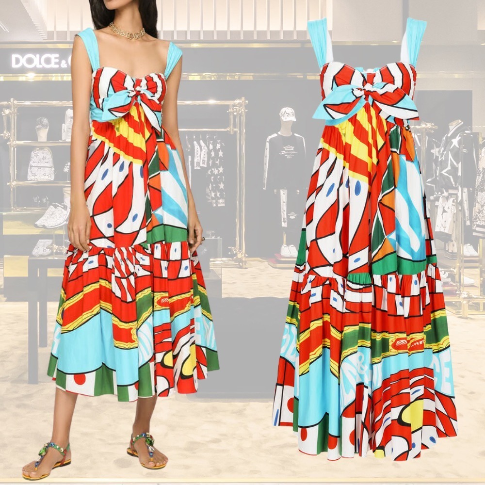 二点落札で送料無料! 2A48 日本未入荷!【未使用/タグ付】ドルチェ&ガッバーナ カレット柄 Aライン ドレス ロングワンピース 38 ミモレ丈