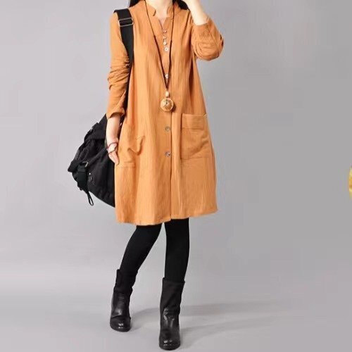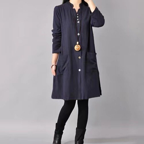OHJ281☆新品秋 ナチュラル 無地コットンリネン 綿麻シャツチュニック レディース シャツワンピース M~2XLサイズ選択