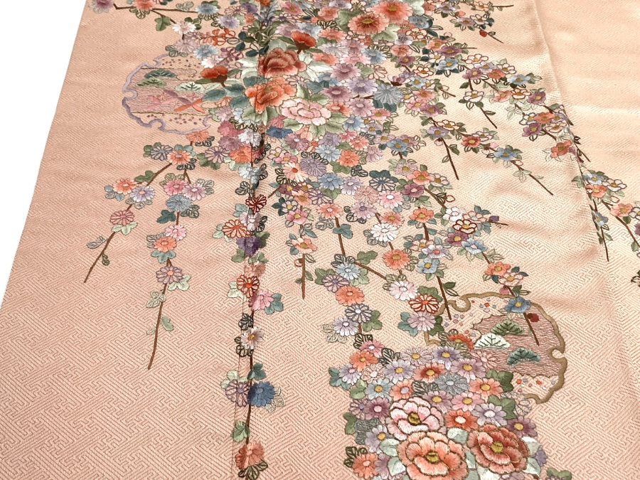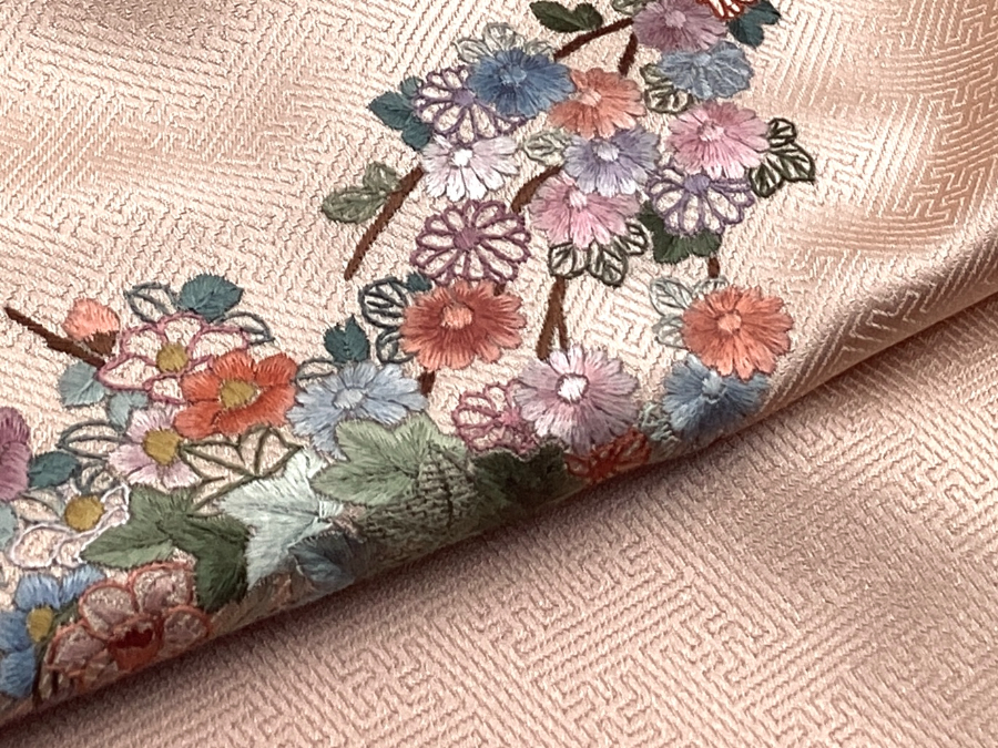 コメント | 中古の正絹お仕立て上がり附下袷きもの長襦袢付きです。 さや型紋綸子生地に蘇洲刺繍の高級なお品物です。 バチ衿長襦袢付のセット品です。 使用感少ない未使用に近い綺麗な品物です。 |