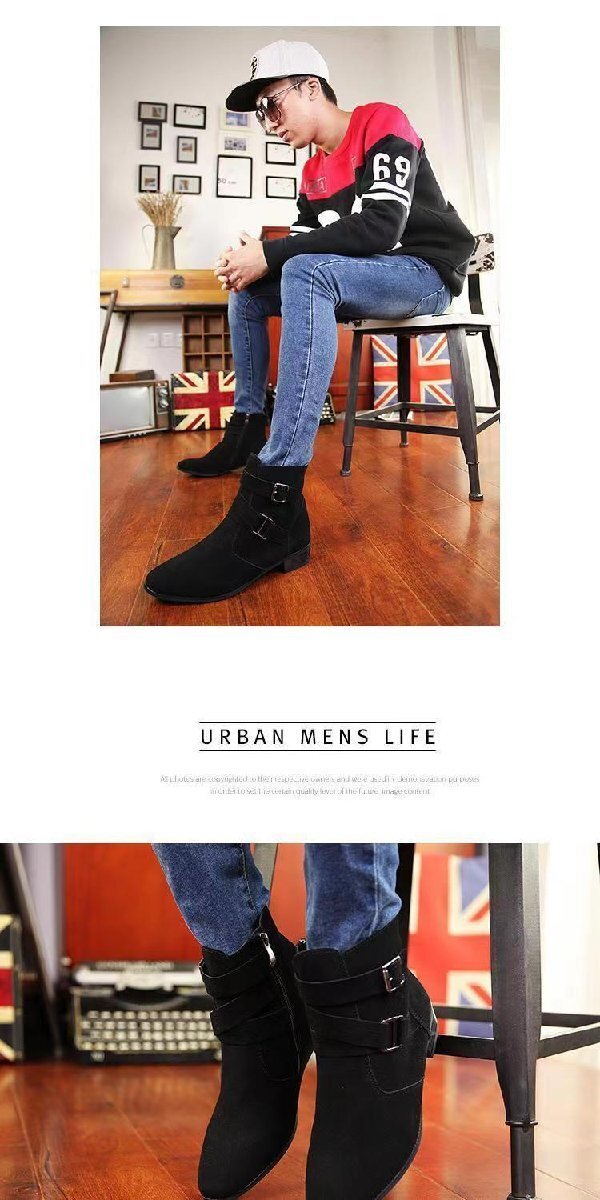 OHJ351☆メンズブーツ 新品 ショートブーツ サイドジップ シークレット 紳士おしゃれ スエード