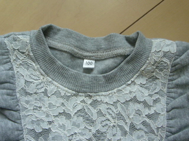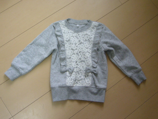 | ■長袖トレーナー 西松屋 グレー レース柄 リボン サイズ100cm USED | |
