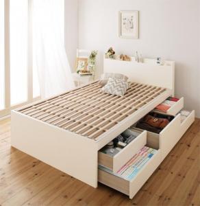 日本製_棚・コンセント付き大容量すのこチェストベッド ベッドフレームのみ セミダブル