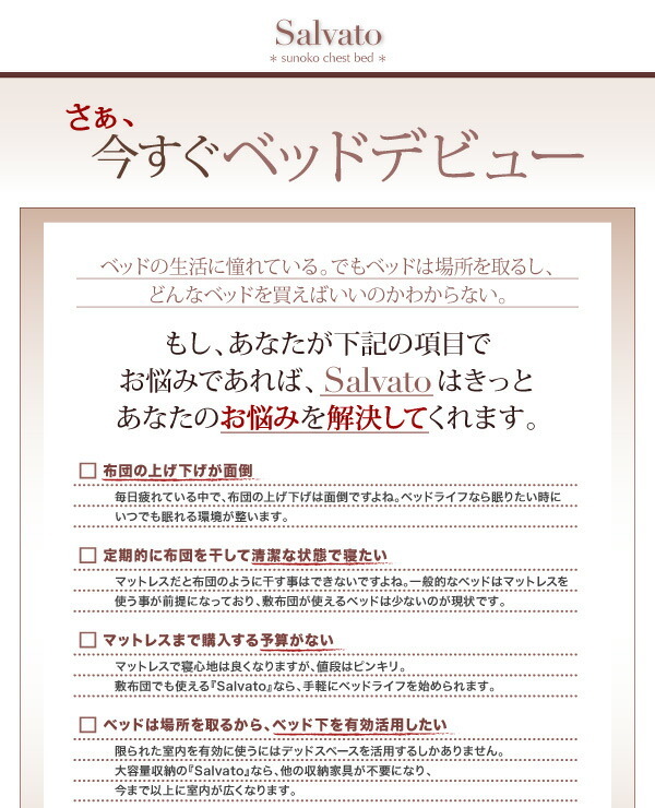 お客様組立 日本製_棚・コンセント付き大容量すのこチェストベッド Salvato サルバト ベッドフレームのみ セミダブル【フレームカラー:ホワイト】です。