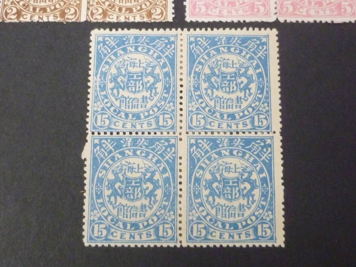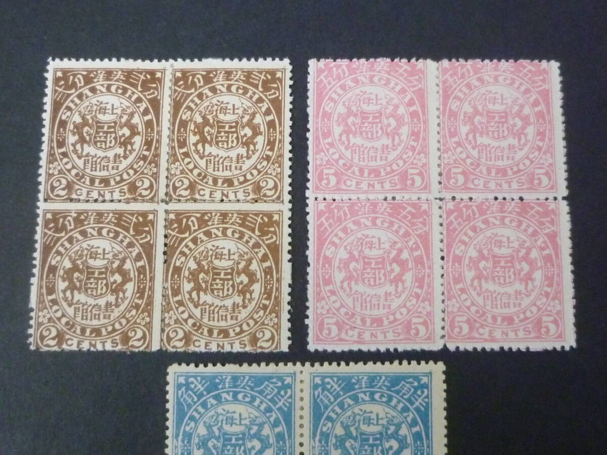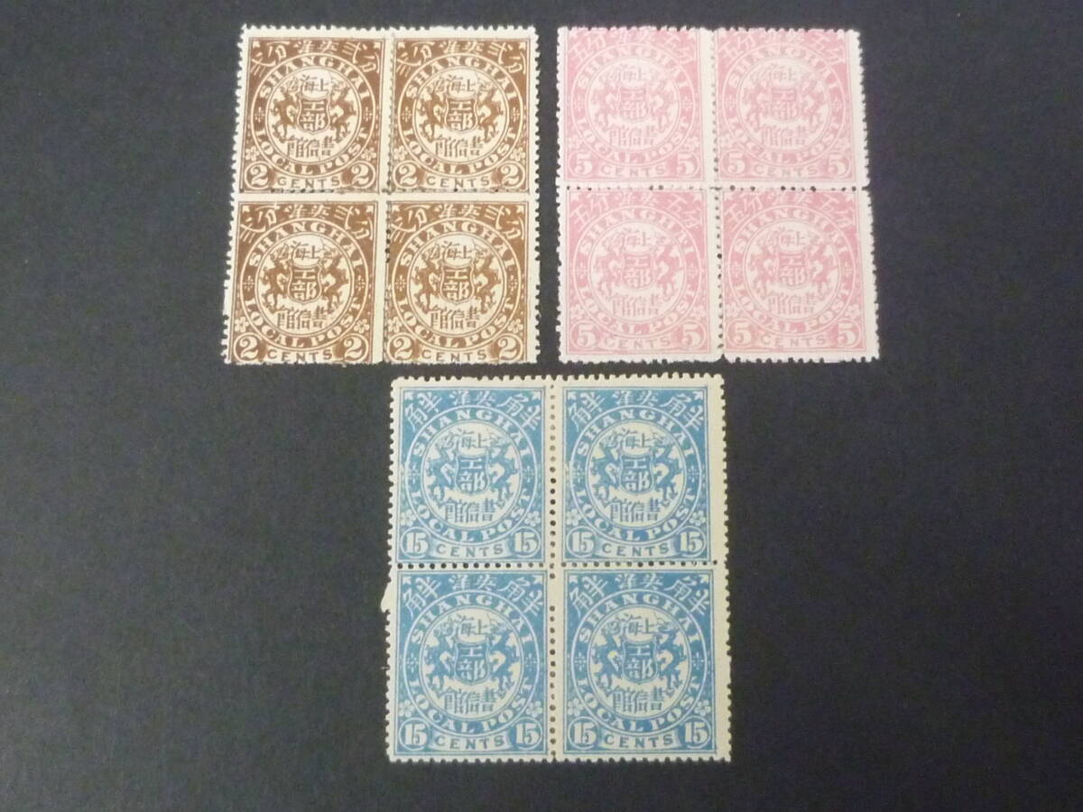 24L M №29 旧中国切手 上海書信館 1890年 JPS#111-12・114 工部双龍票 田型 計3種 未使用OH