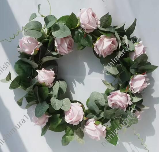 ハンドメイド★薔薇の造花リース★バラ★壁飾り玄関リース★置物★卓上リース★ガーデニング★造園オーナメント★ピンク