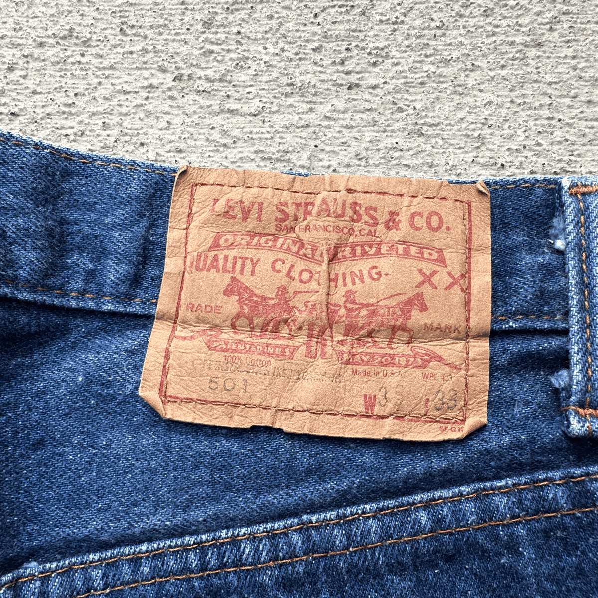 ハチマル 米国製 80s オリジナル Levi’s 501 W35(W33) L33 CARE入り紙パッチ 金脇割り ビンテージ 1980年代 中古 ジーンズ アメリカUSA製