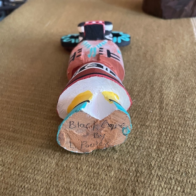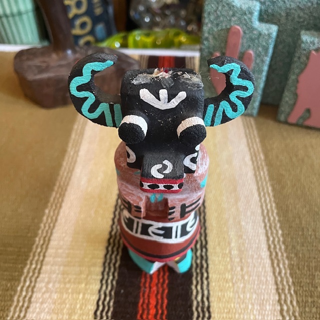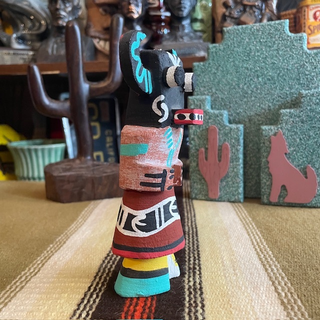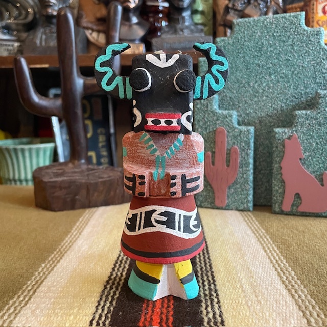 アメリカのアンティークショップで購入しました。 ヴィンテージのカチナドールです。ネイティブアメリカンが制作した本物になります。 木製で、サイズは高さ約15cmあります。