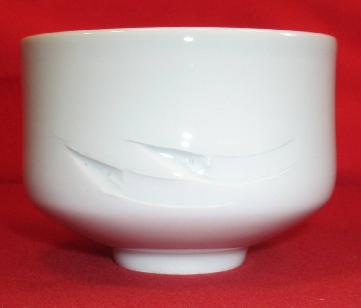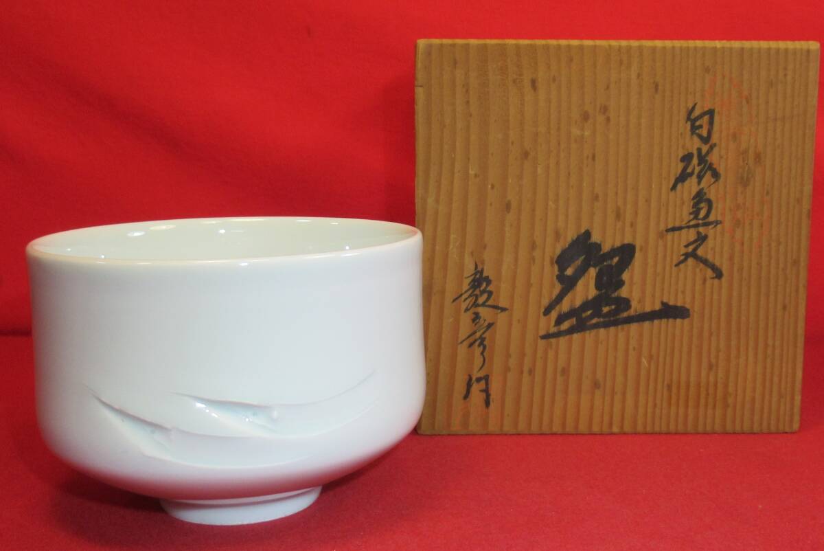 茶道具『辻毅彦作 白磁魚文碗 茶碗 在銘「毅彦」共箱』肥前有田焼 検:茶事 七事式 茶道教室 表千家 裏千家 武者小路千家 千家十職