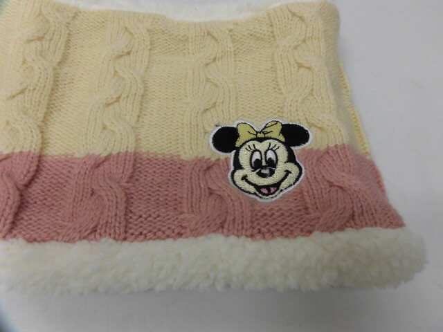 Disney ディズニー ミニーマウス Minnie Mouse ボア ネックウォーマー ミニーちゃん 刺繍 ベージュ×ピンク