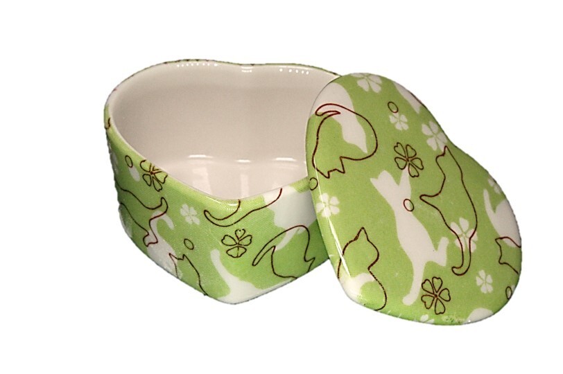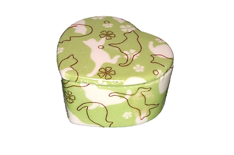 ねこ グリーン ハート 蓋物 小物入れ リング 宝石 ジュエリーケース 陶器 猫 ネコ 容器 ACS WEB SHOP