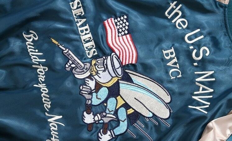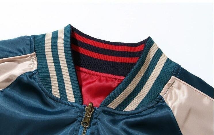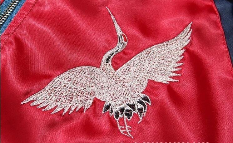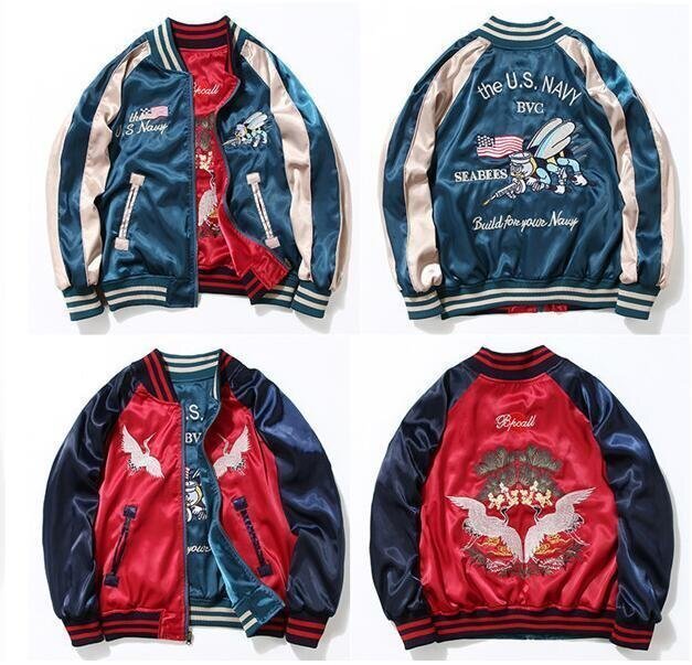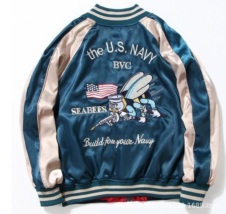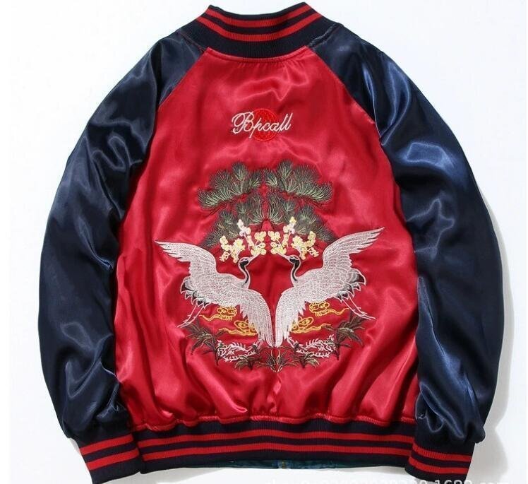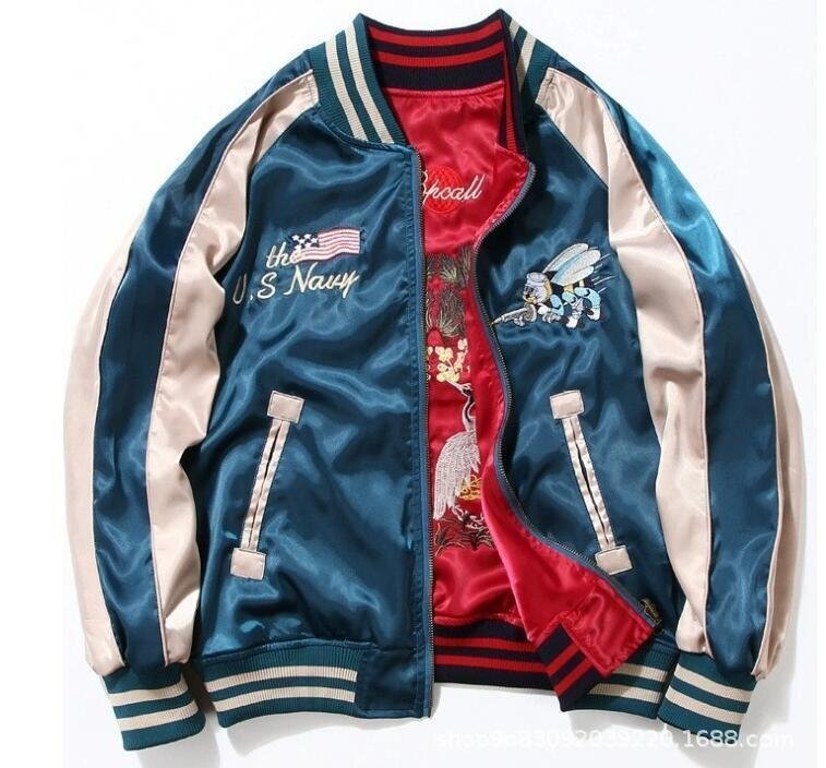春秋スカジャン メンズ ジャケット スタジャン 両面着 和柄 刺繍 新品 蜜蜂 鶴 ブルゾン 大きいサイズあり おしゃれ XL ブルー
