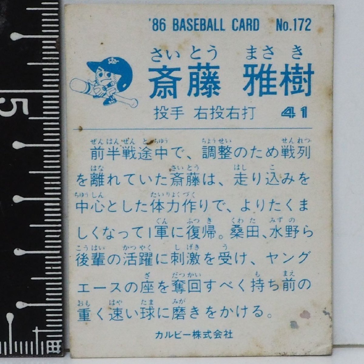 86年 カルビー プロ野球カード No.172【斎藤 雅樹 投手 読売ジャイアンツ巨人】昭和61年 1986年 当時物 Calbee おまけ食玩BASEBALL【中古】