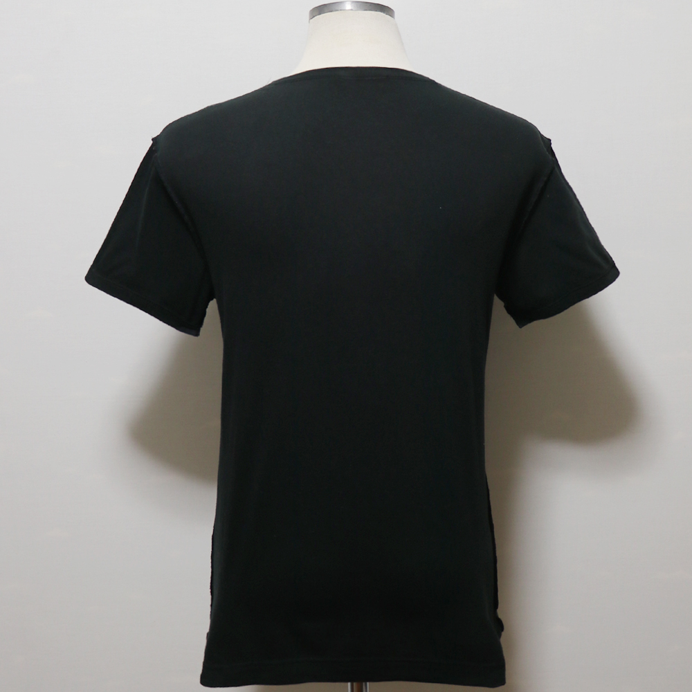 ストレッチの効いたイタリア製の最高級コットンを使用したタイトシルエットのTシャツ。お得意のボクシングモチーフの渋いグラフィックに、襟バインダーにはブランドピス、肩にはサテンのテープ、袖繰りと脇のシームはオーバーロック外縫い仕様。ドルガバらしいディテールと美しいシルエットは流石です。超ワイドパンツやM47などを合わせて今風に着るのもお勧めです。