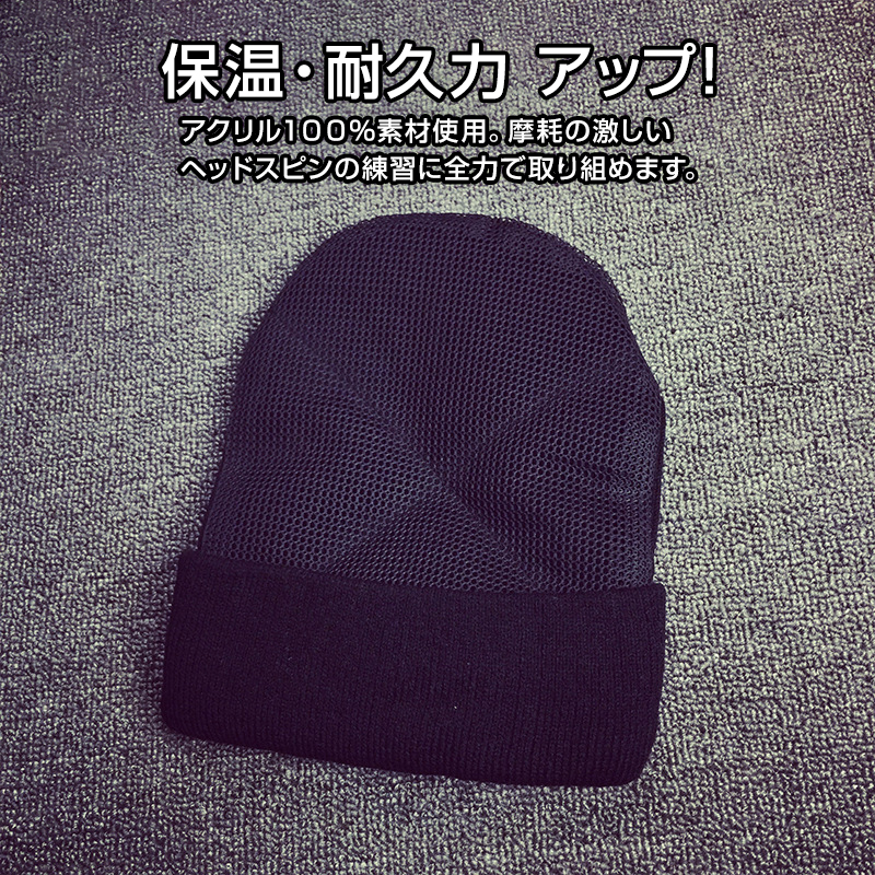 ブレイクダンスやヘッドスピンなどで使えるスピンニット帽です。 |