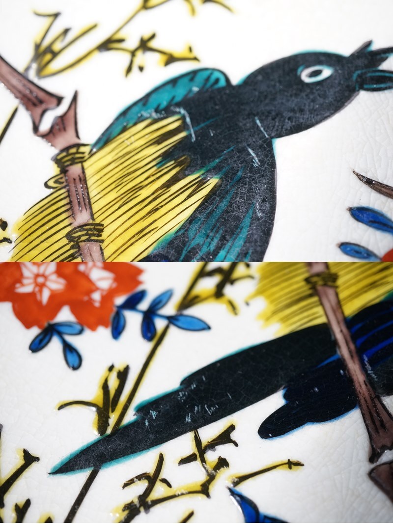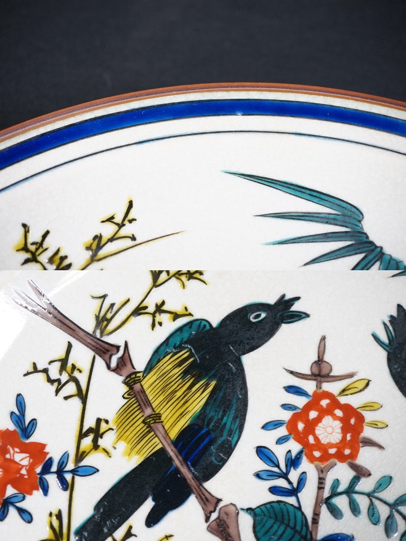 東ハ:【九谷焼】角福銘 色絵 哥々鳥図 飾皿 約31.5㎝ 叭々鳥図写し 八哥鳥 花鳥図 吉祥図 大皿 飾り皿 ★送料無料★ |