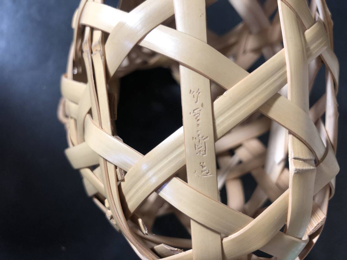 田辺竹雲斎造 滴水居 竹篭 掛花篭 共箱 共布付き 竹雲斎 白竹篭 篭花入れ