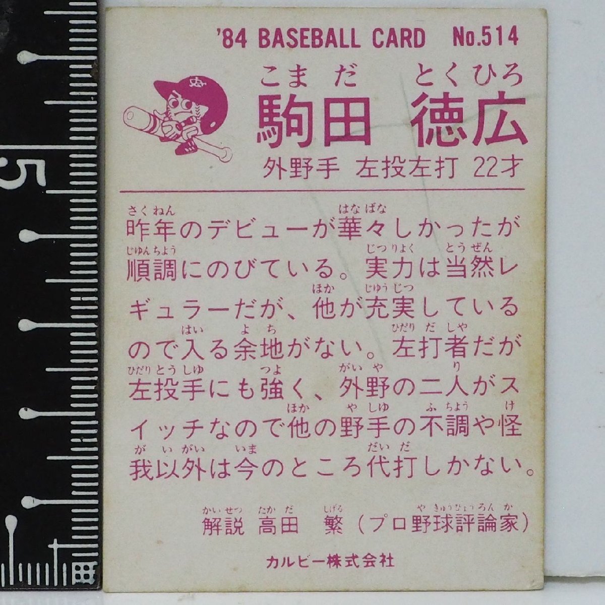 84年 カルビー プロ野球カード No.514【駒田 徳弘 外野手 読売ジャイアンツ巨人】昭和59年 1984年 当時物 Calbee おまけ 食玩 BASEBALL中古