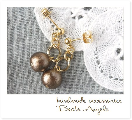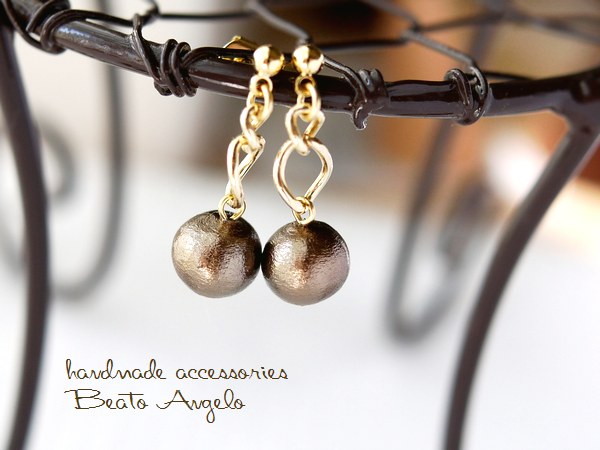 ◇◆+angelo+コットンパールのチェーンピアス(p-077)ブロンズ 8mm G ブラウン ポストピアス フィガロ