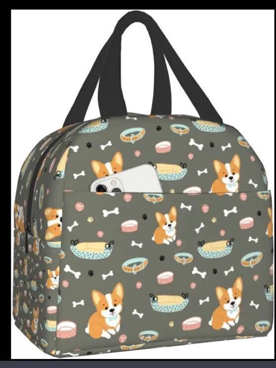 □大容量!!ウェルシュ・コーギー★保冷バッグ☆犬好き★わんちゃん♪イラスト★グレー♪鞄☆お出かけグッズ★新品未使用品★送料無料◇