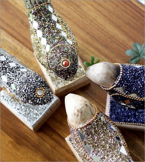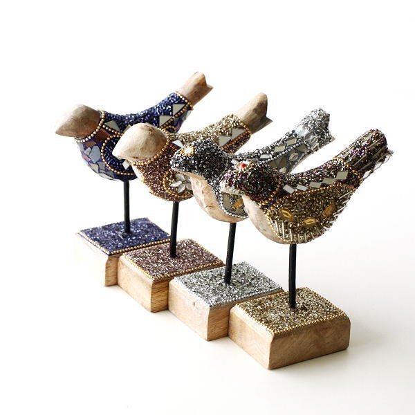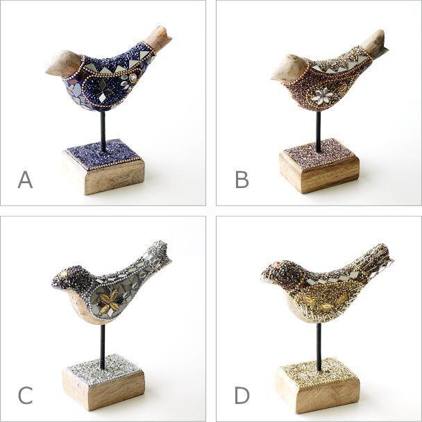 | こちらのページでは【Cタイプ】のみの販売です 木製のスタンドバードに ラメをベースに塗った上から ビーズやボールチェーン、 ビジューやミラーをにふんだんに配した 煌びやかでゴージャスなバードオブジェ ミラーが自然の光を受けて 壁やデスクにキラキラと 幻想的な景色をつくりだしてくれそう・・・ エキゾチックなオーナメントアニマルは 花鉢やグリーンと一緒に飾ったり 玄関の小さな棚に飾ると 空間のワンポイントになりそうです 商品名 : ビーズとウッドのスタンドバード 商品番号 : tom5580 全体のサイズ(cm) : 幅14×奥行5×高さ15 重量 : 180g 材質 : 木 アイアン 生産国 : インド ※手作り品の為ビーズの配置が僅かに異なる場合がありますが全体の雰囲気は変わりません ※商品の特性上、僅かな傾きやがたつき、接着痕等はご容赦ください ※天然木使用のため、木目や節・色合いの違い等は木の表情としてご理解ください ※ディスプレイによる色の違いはご了承下さい |