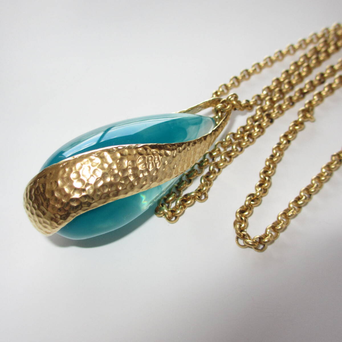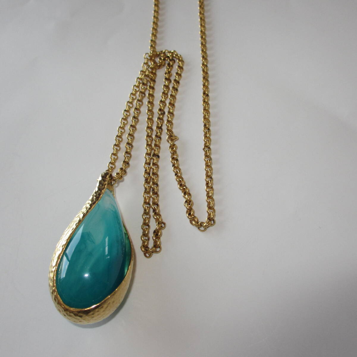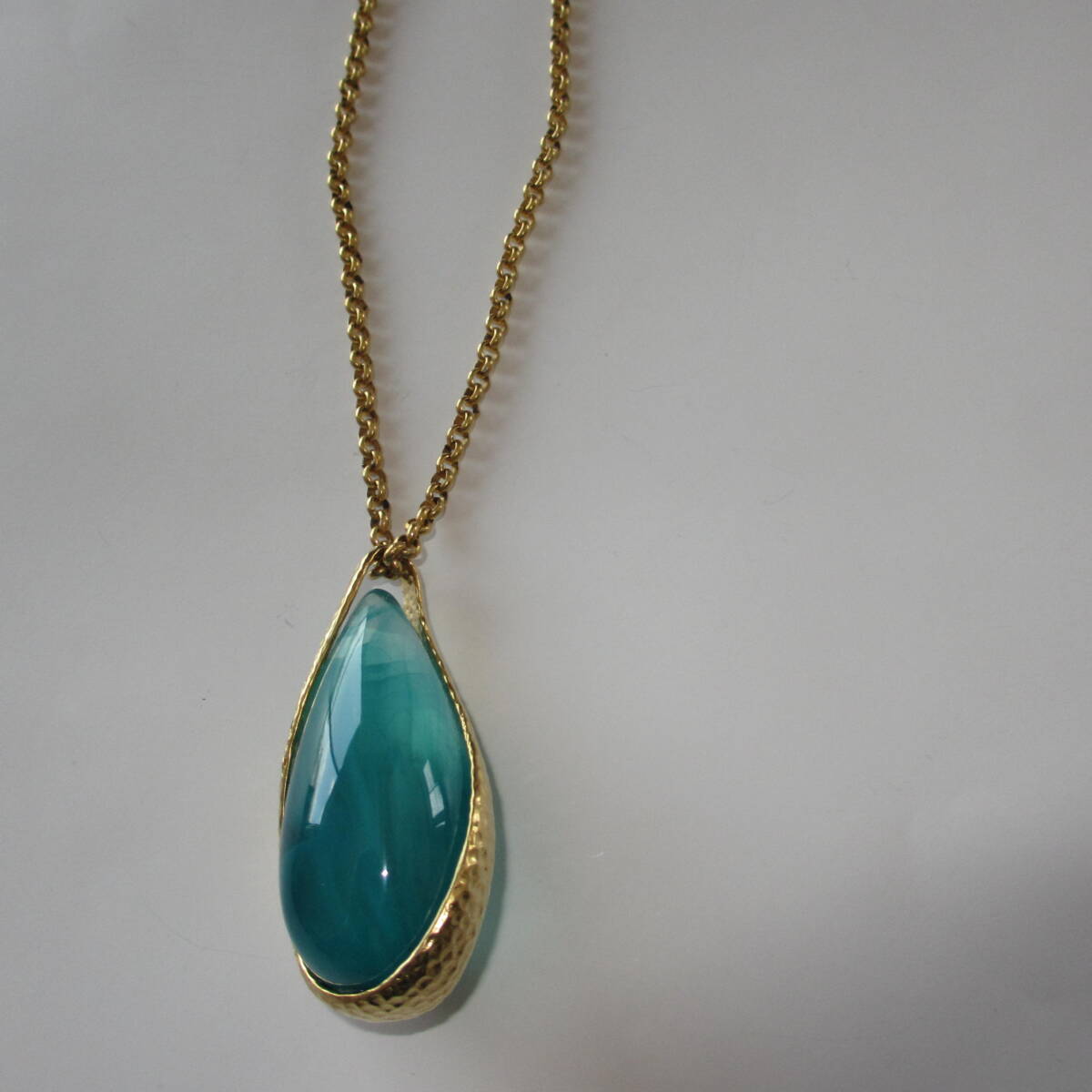 ブルーの大きい雫のようなフォルムが素敵なロングネックレスです。