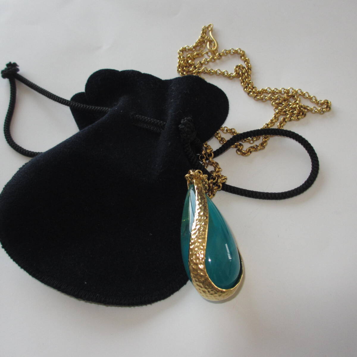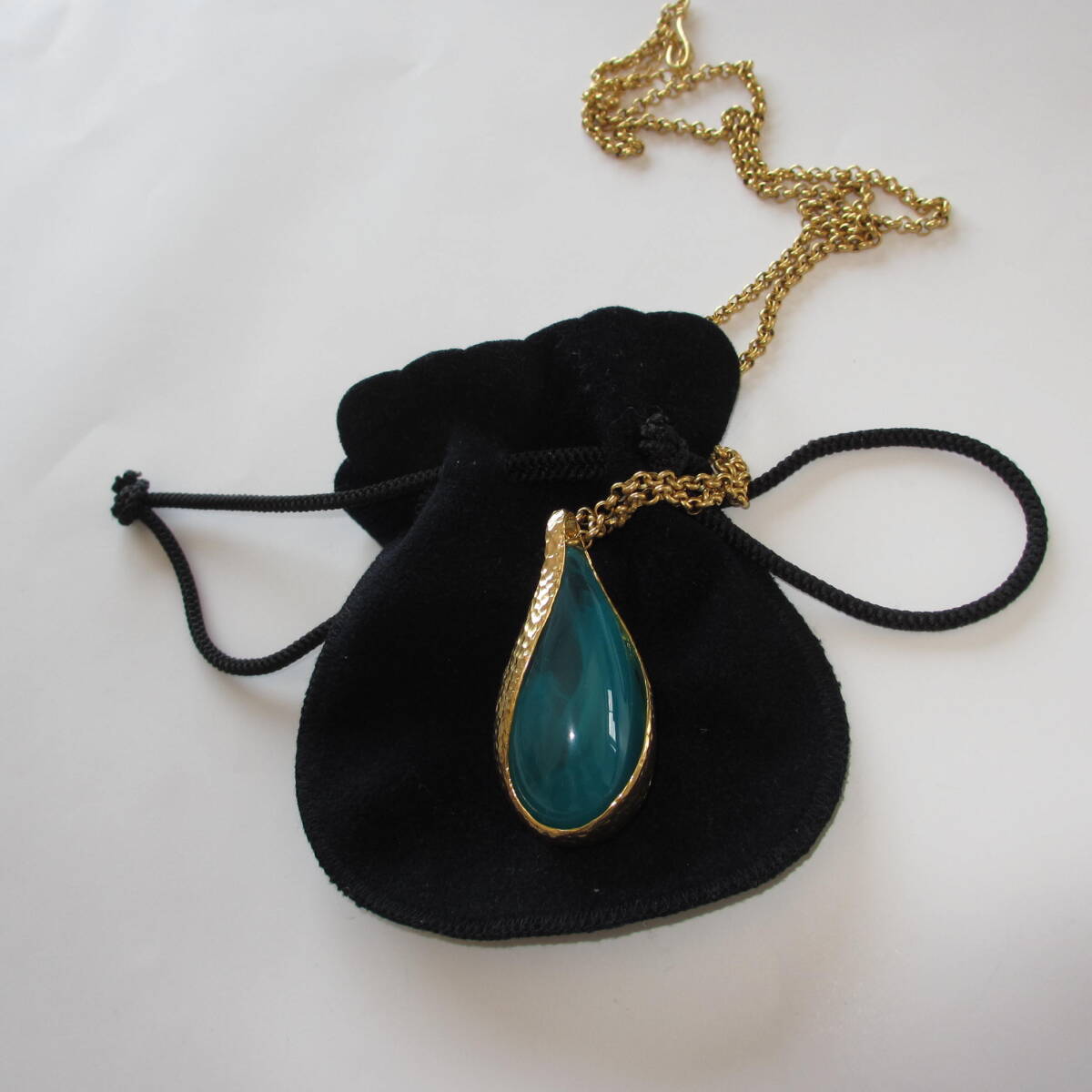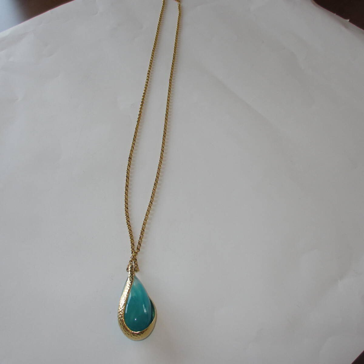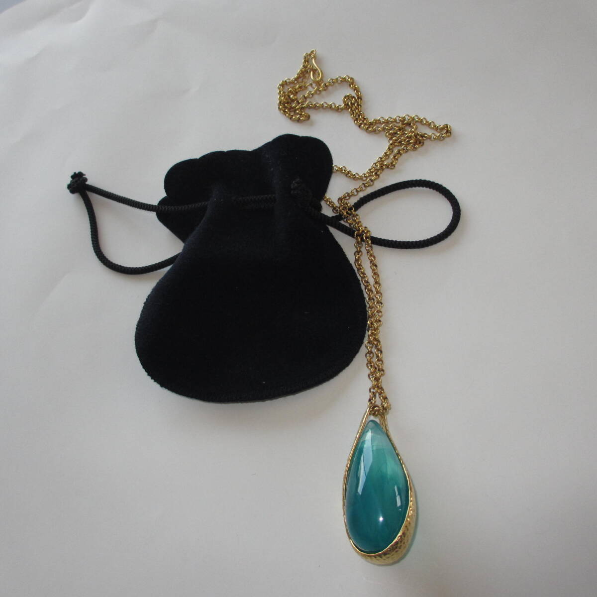 ブルーの大きい雫のようなフォルムが素敵なロングネックレスです。