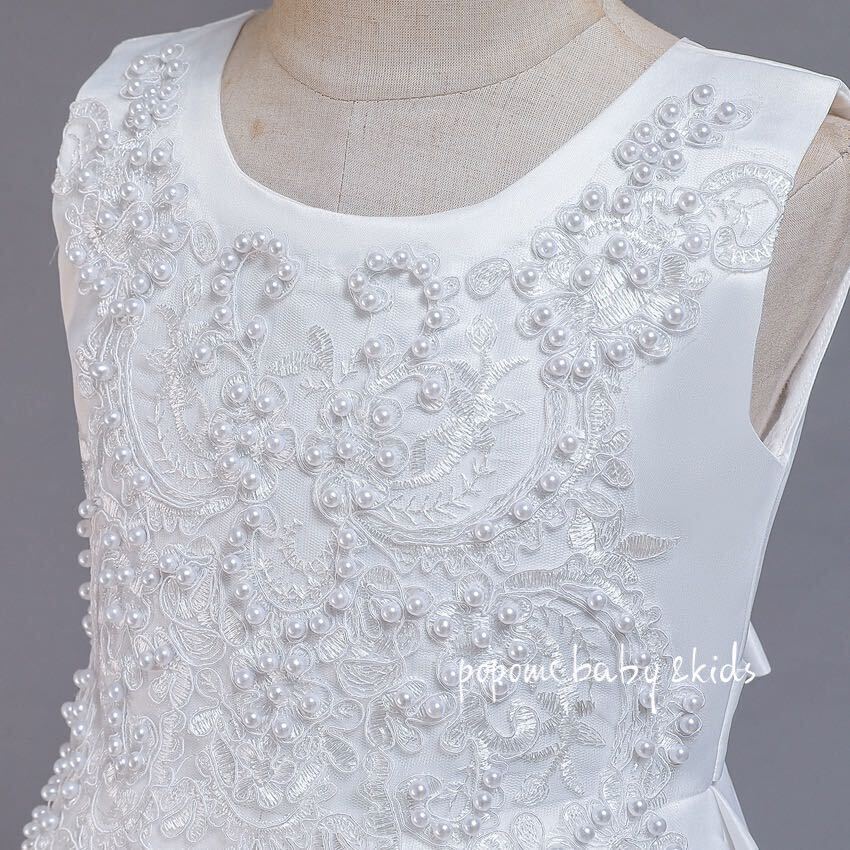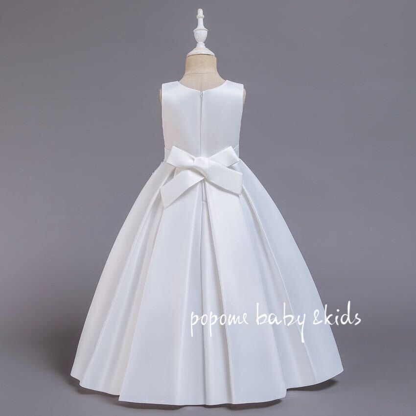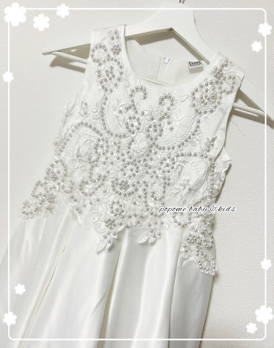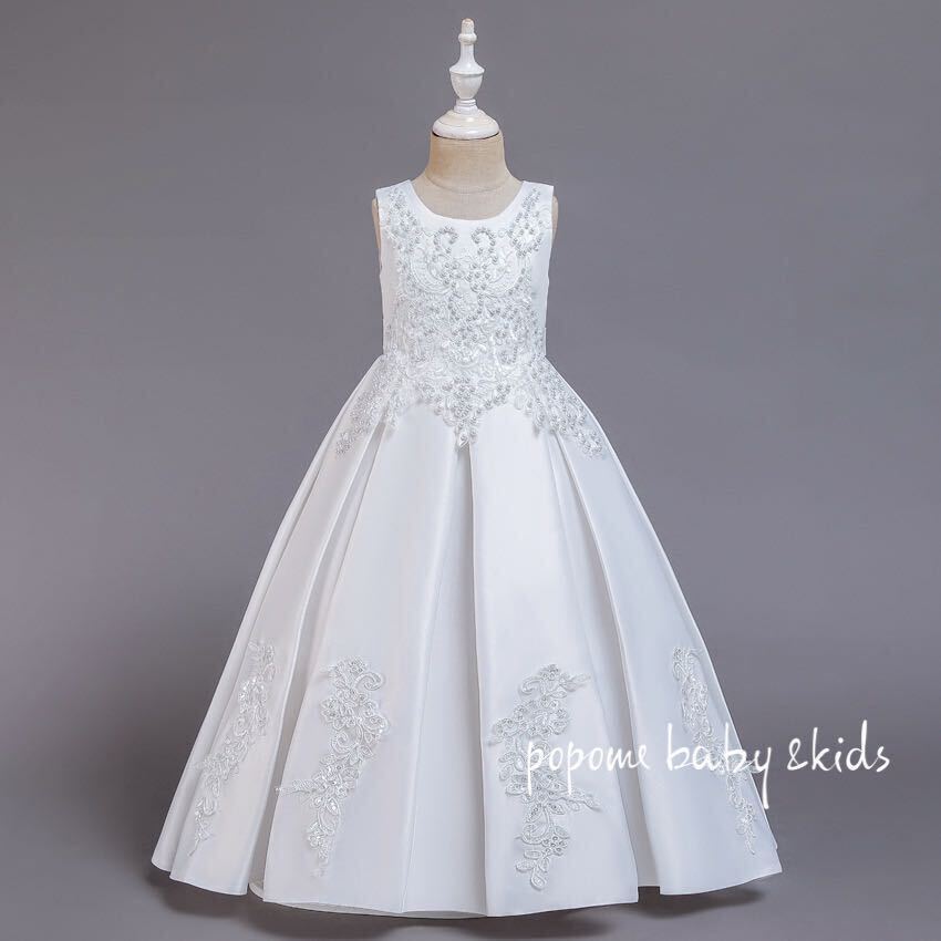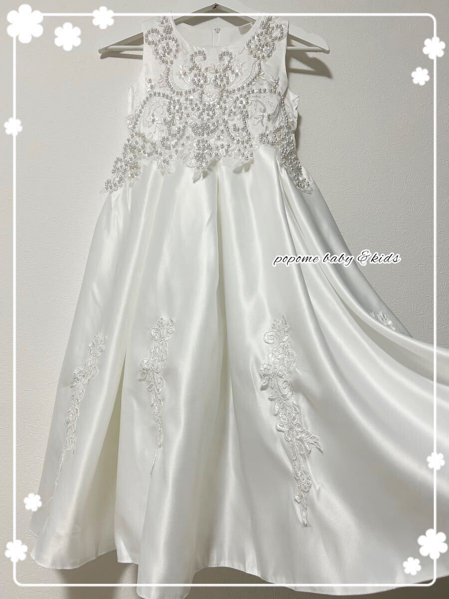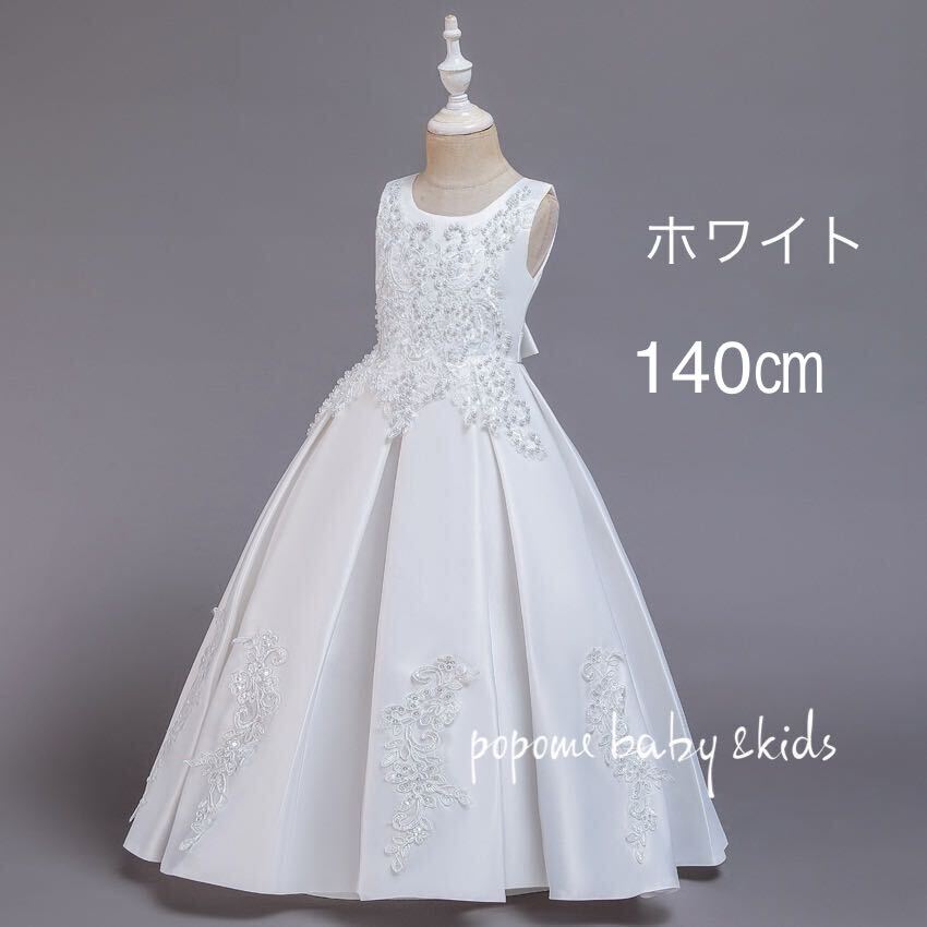 【140㎝ホワイト】人気子どもドレス結婚式発表会 ピアノロングドレスフォーマルジュニアドレス女の子七五三リングガール演奏会コンクール