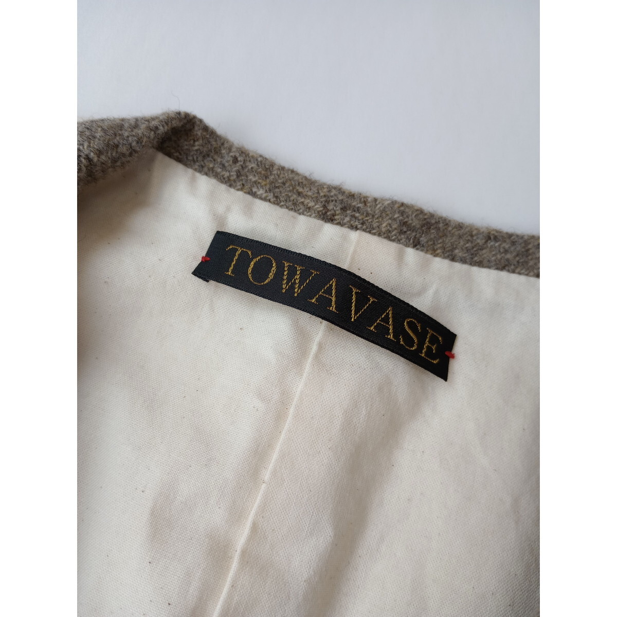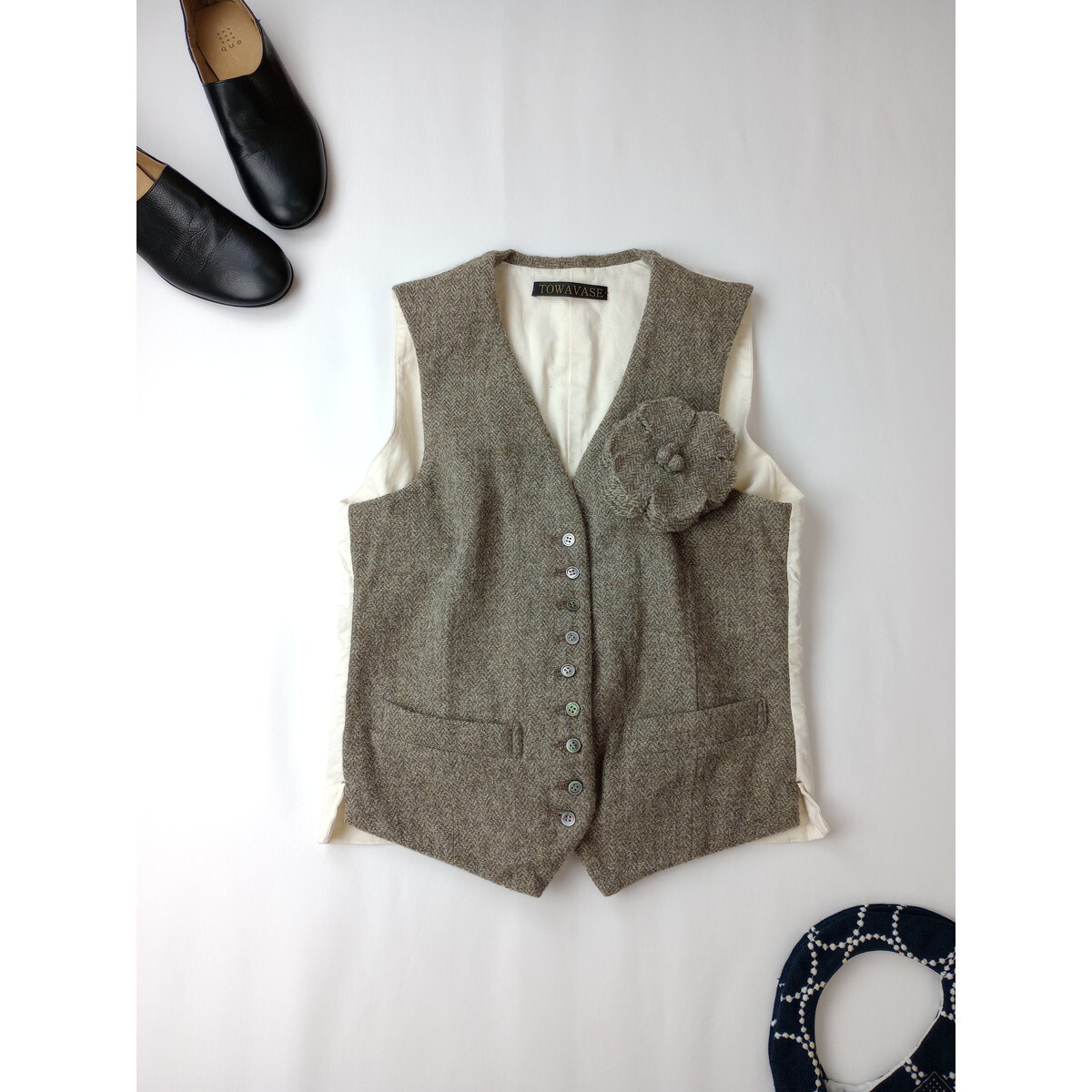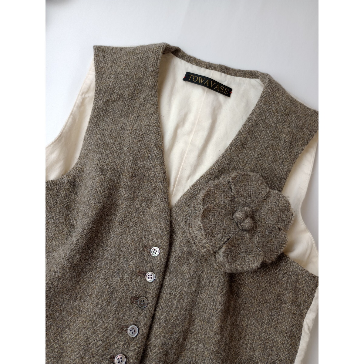 TOWAVASE トワヴァーズ コサージュ 付き ツイード ベスト ベージュ