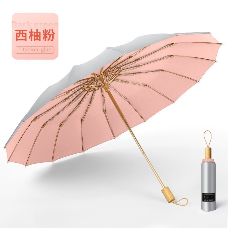 チタンシルバー 16連 折りたたみ傘 日傘 晴雨両用傘 日除け 日よけ・紫外線対策強化