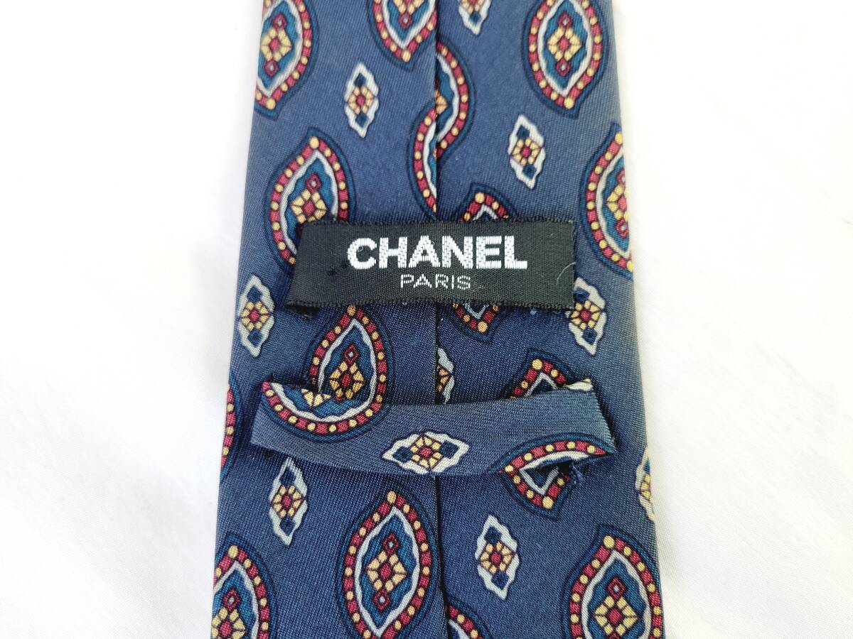 シャネル ペイズリー系 ネクタイ ビジネス カジュアル ネイビー CHANEL