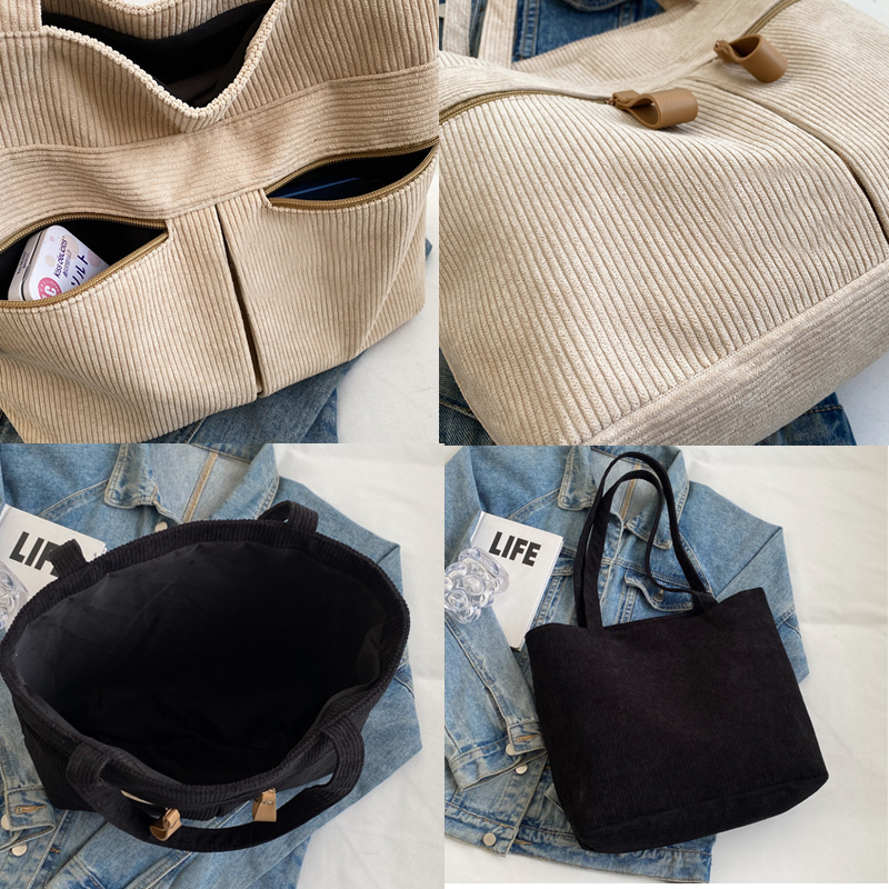 大容量コーデュロイトートバッグ カラー:ベージュ