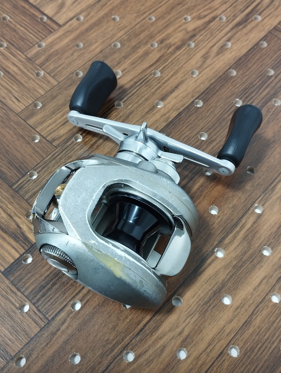 ★中古で購入しましたが、使用せず保管していました。巻き軽くスムーズですが、シャラ感、シュル音あります。クラッチ入切、ドラグ強弱できています。他ー