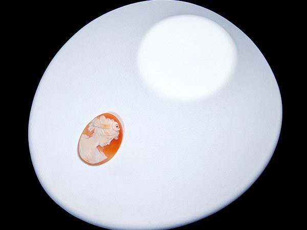 凛々しい表情を浮かべる女性像は、柔らかい髪の曲線や、艶やかな肌の質感など、精緻を極めた繊細な彫刻で演出された魅力的なシェルカメオルース作品です!