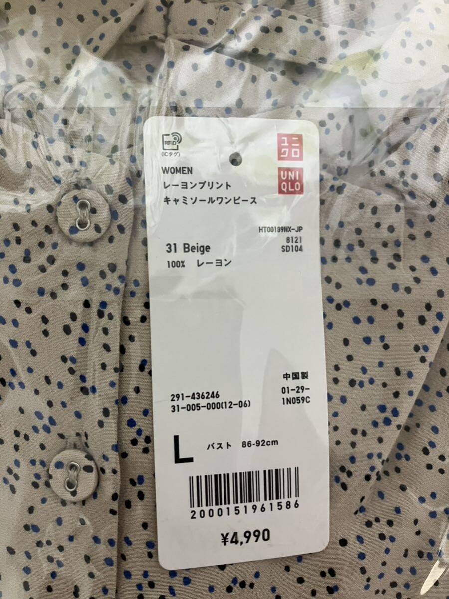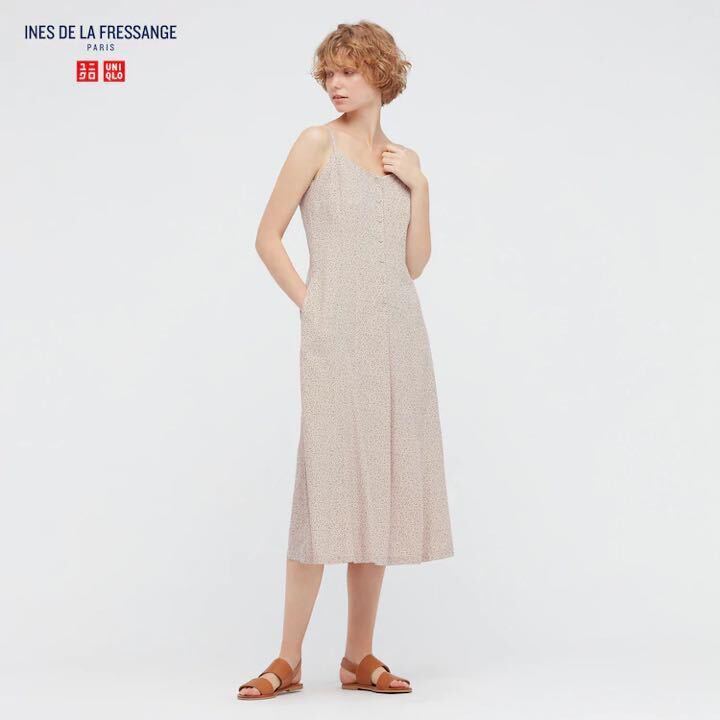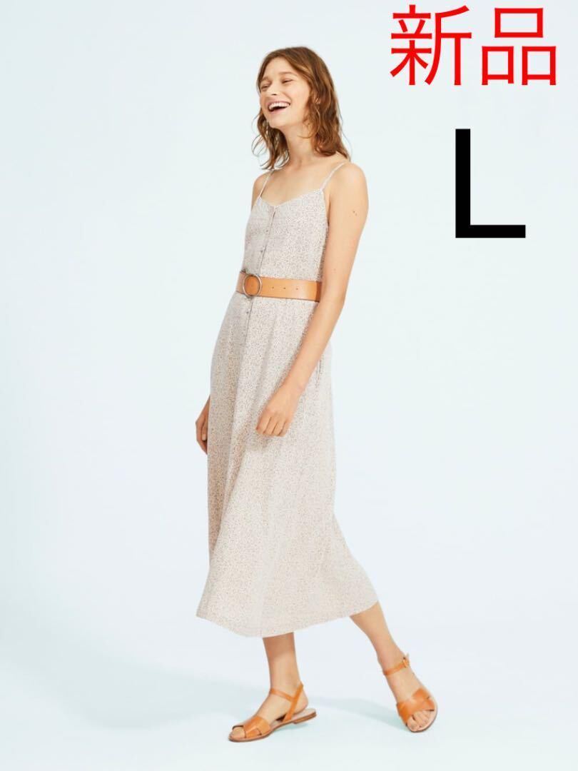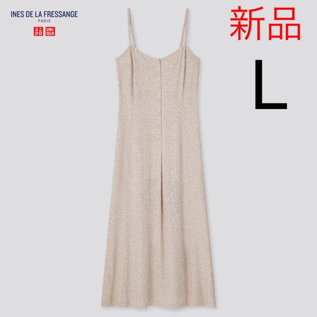 新品 ユニクロ INESコラボ レーヨンプリントキャミソールワンピース Lサイズ ベージュ