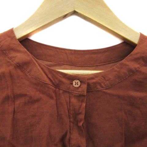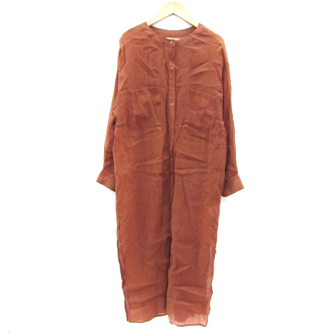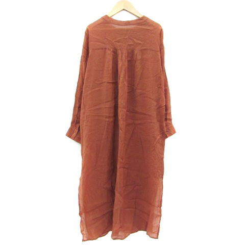 エヘカソポ サマンサモスモス ehka sopo SM2 シャツワンピース ロング丈 長袖 バンドカラー シアー スリット F ブラウン ■MO レディース
