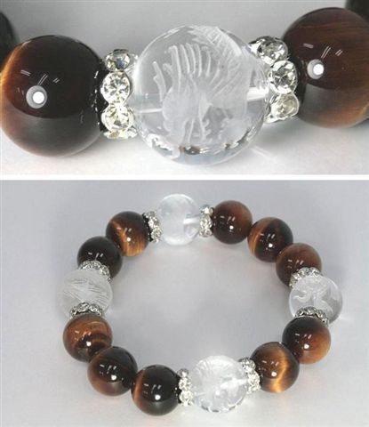 四神ブレス 黄虎目14mm&水晶四神16mm No30