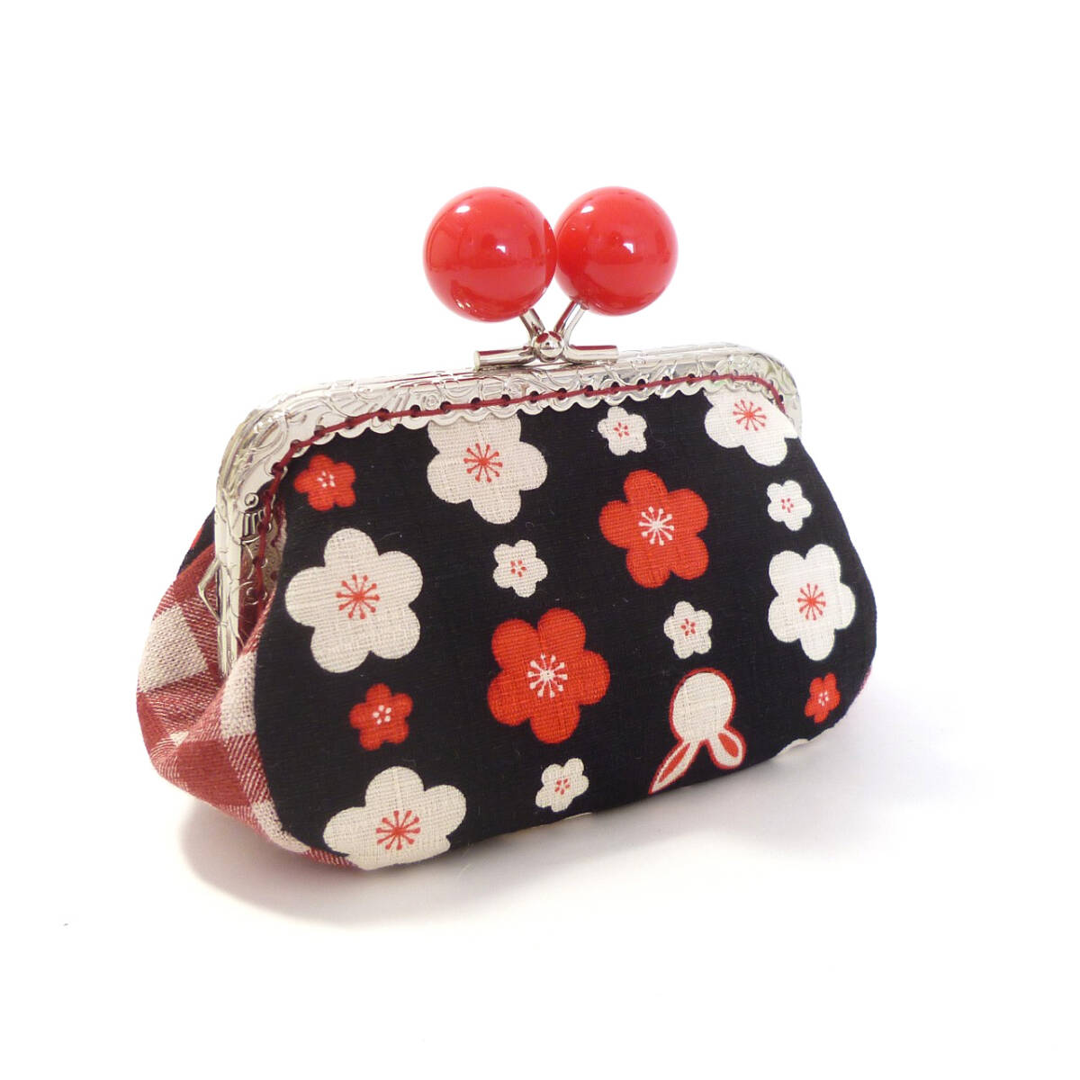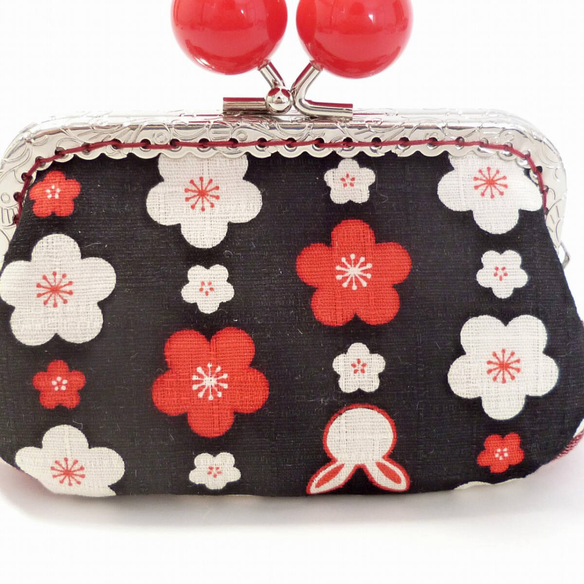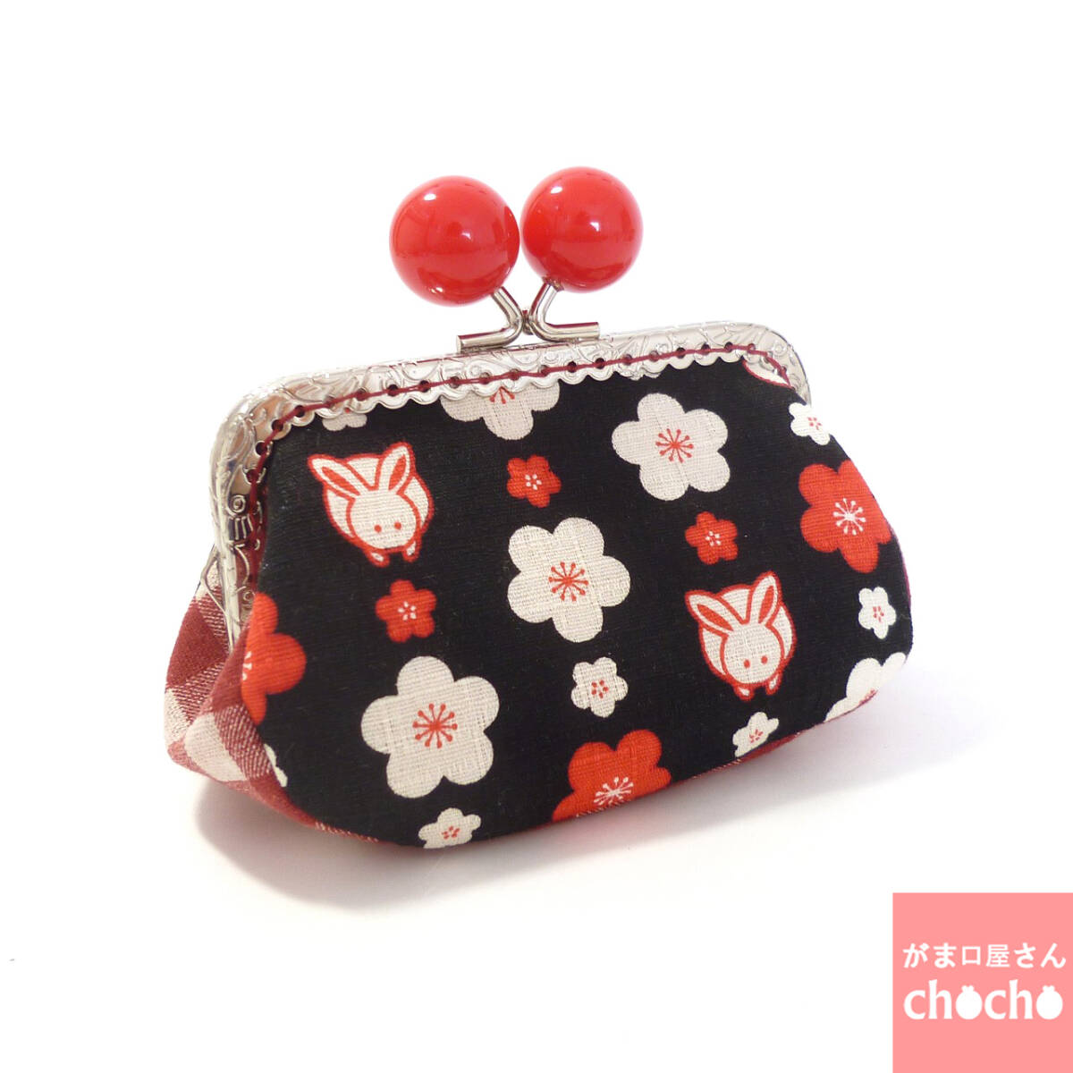 あめ玉 がま口小銭入れ うさぎと梅 ウサギ 花柄 黒 コインケース ハンドメイド G983