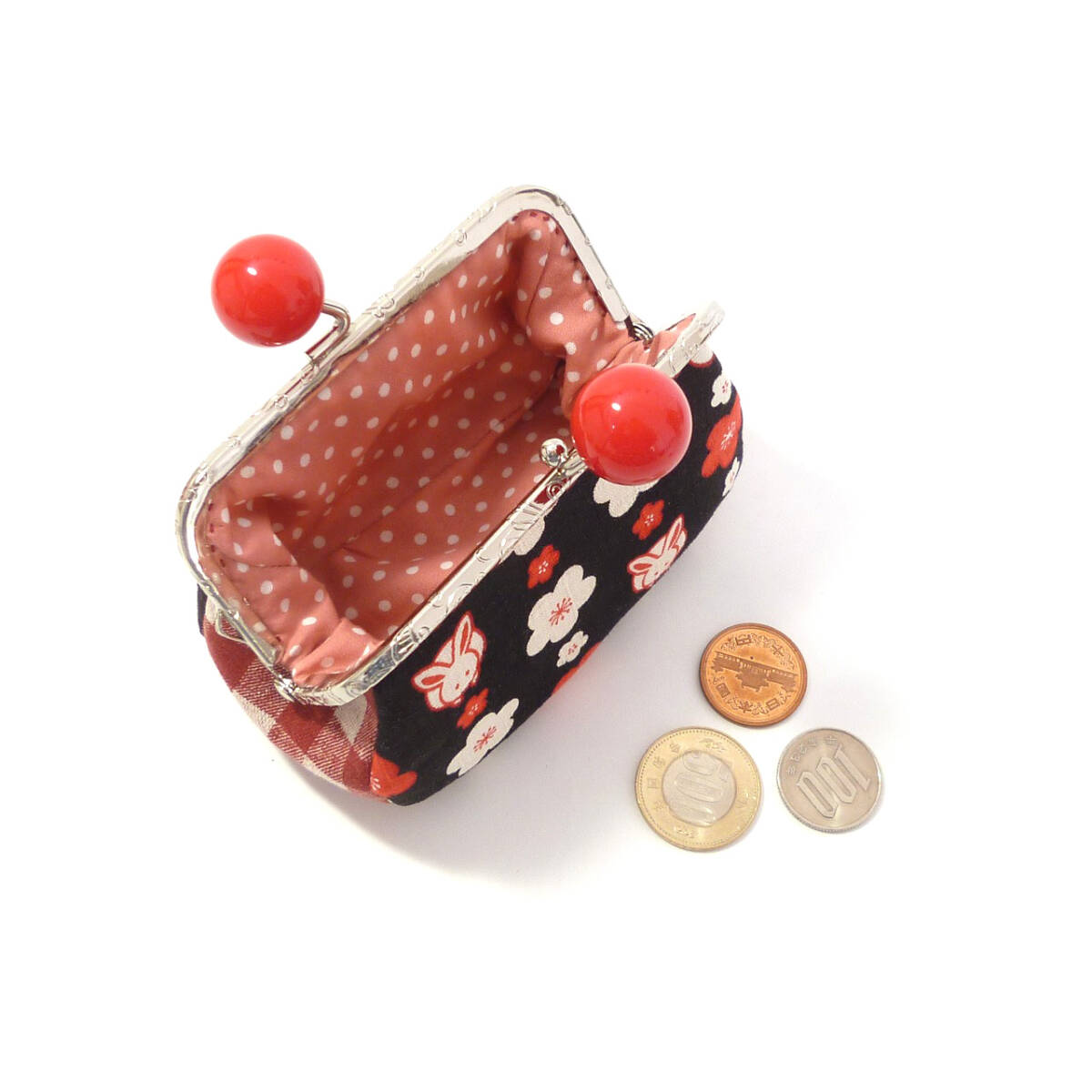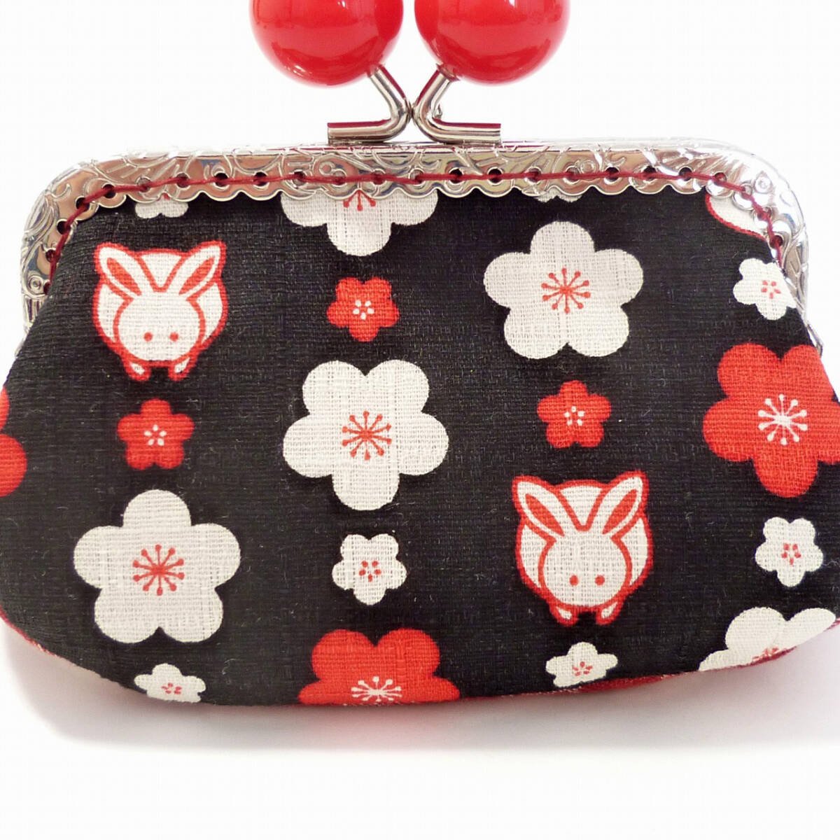 うさぎさんの顔と梅が綺麗に並んだ可愛いがま口です。