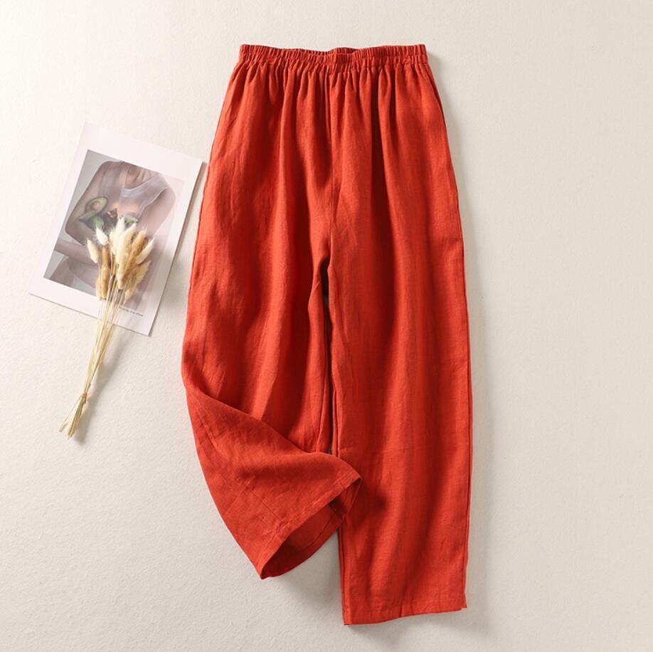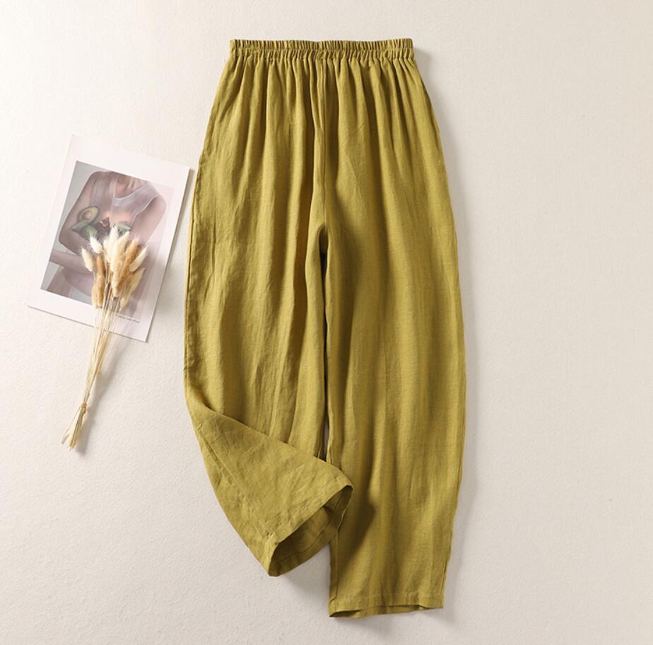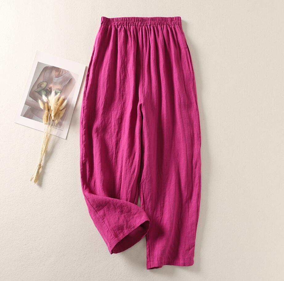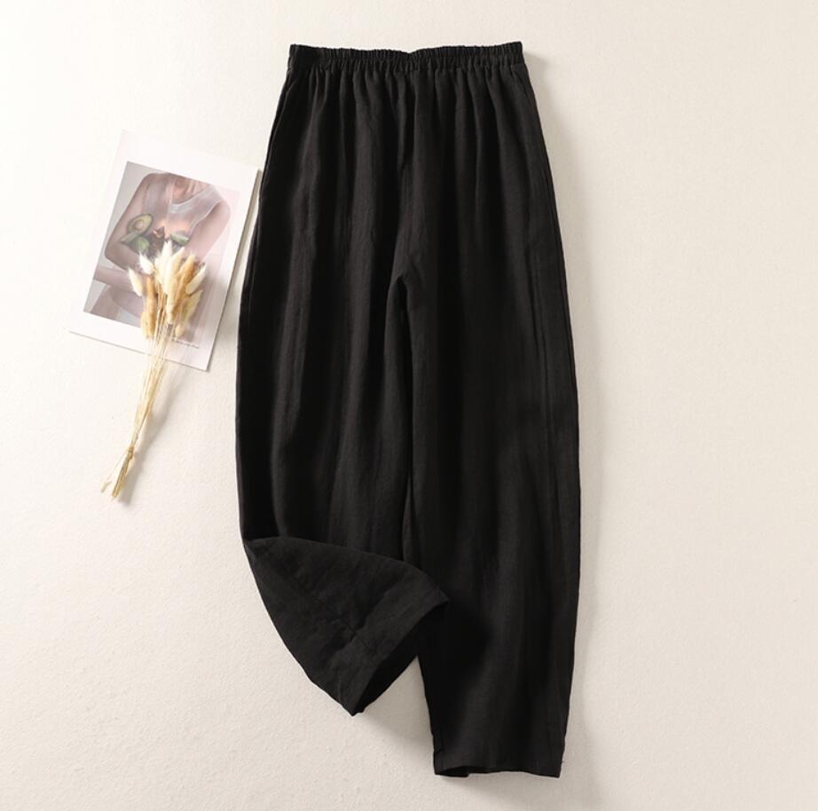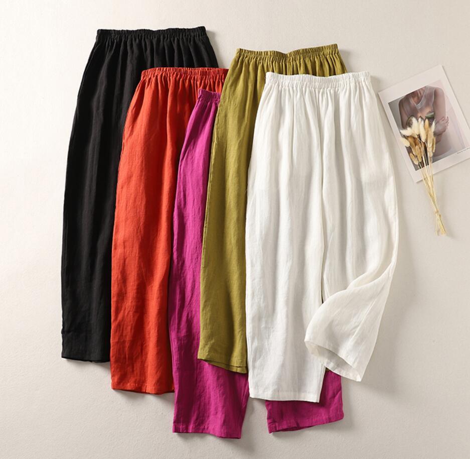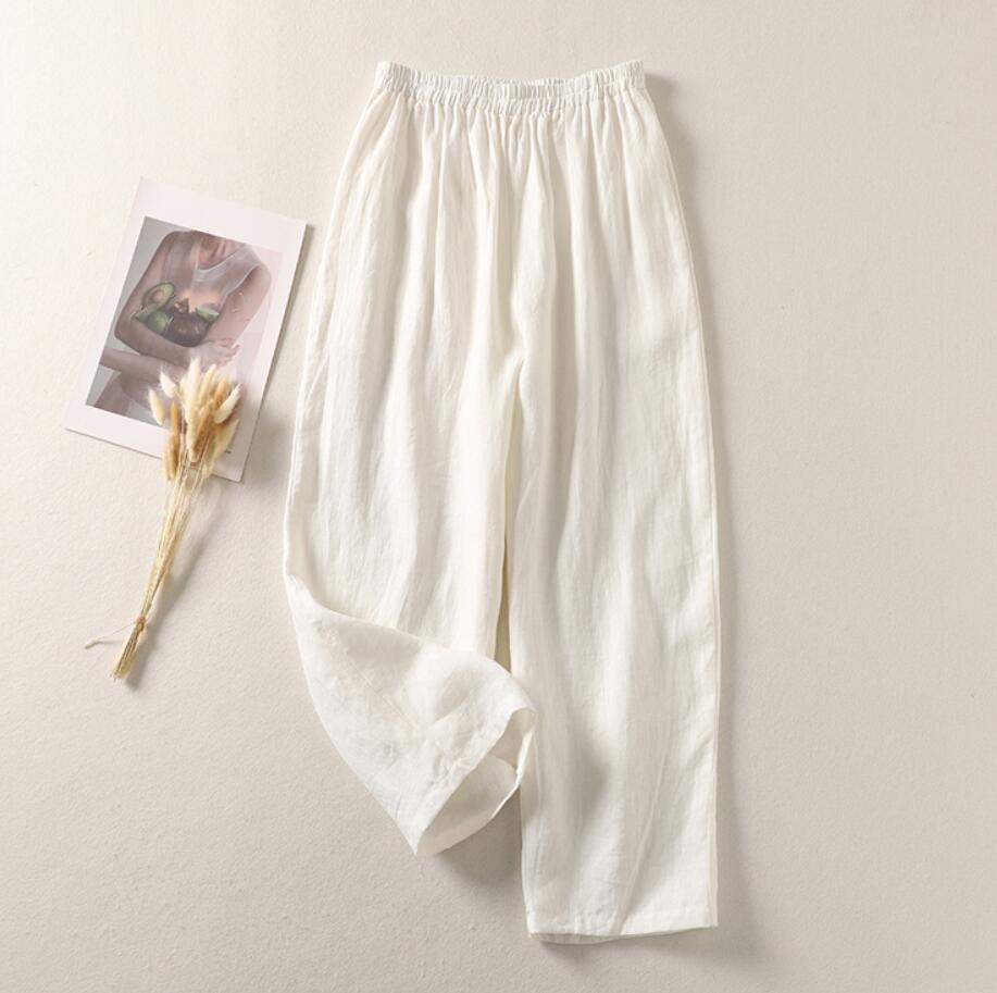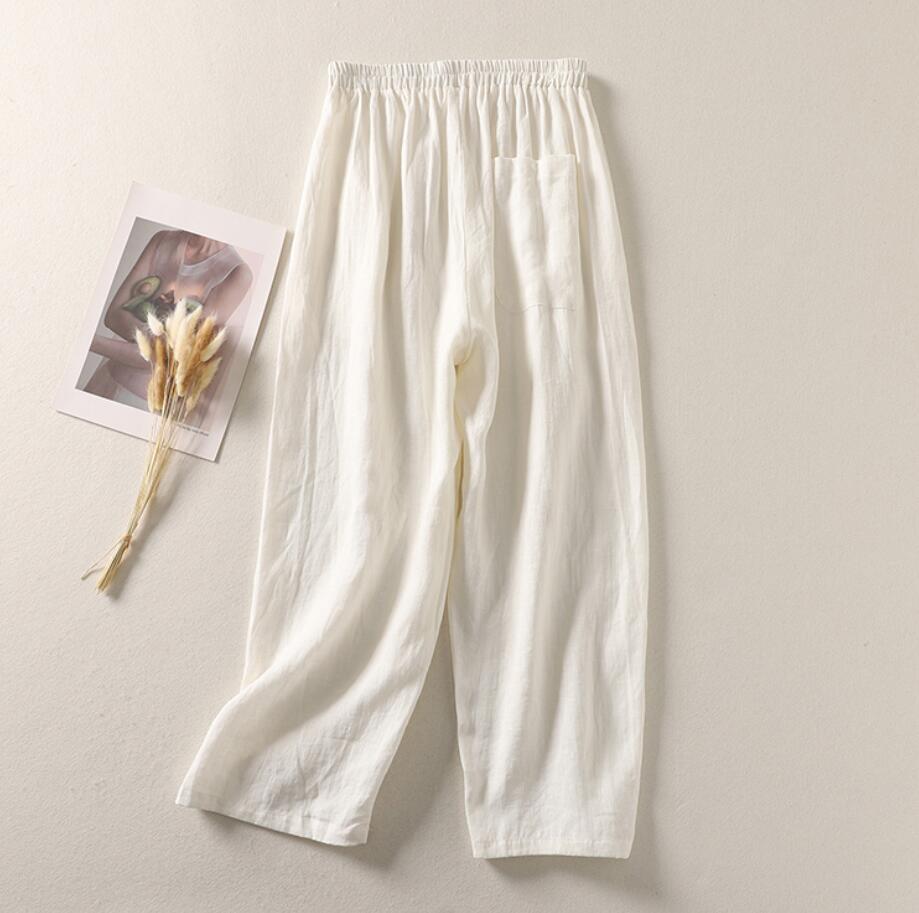新入荷~ カジュアル ワイドパンツ 無地 綿麻 体型カバー ボトムス 素敵な ポケット ゆったり ウエストゴム ガウチョパンツ~ ホワイト