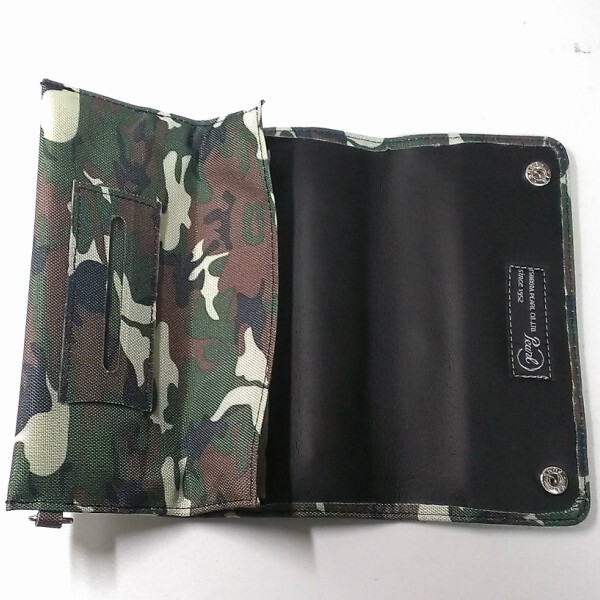 | 商品説明 | 「手巻きタバコポーチ カモフラージュ」 ◇日本製の手巻きタバコポーチ。機能性に優れるお洒落な逸品です。 内部にはペーパーホルダー付き。ゴム素材のインナーを使用。予備のペーパー等を収納するジッパーポケットが付いています。 とてもしっかりとした作りです。いかがでしょうか? |
