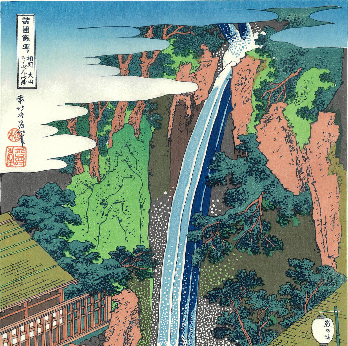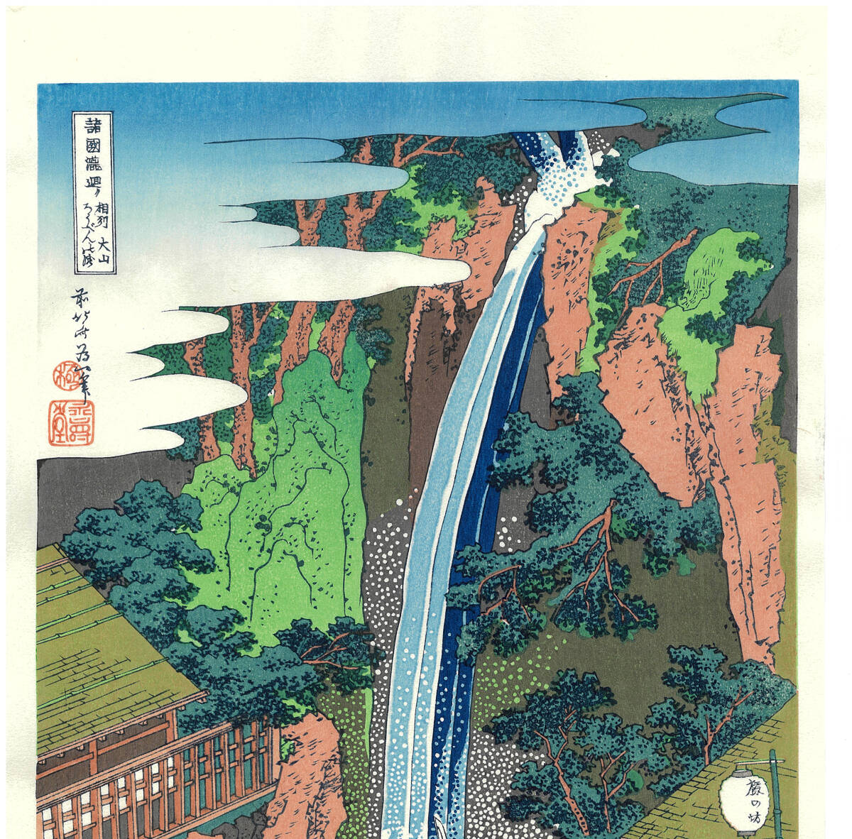 真作保証 東京都伝統工芸品 葛飾北斎 木版画  諸国瀧廻り 相州 大山ろうべんの瀧 初版1833年頃   やはり北斎の木版画は凄い!!