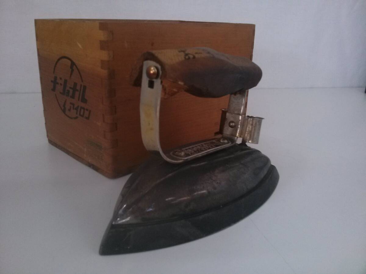 【☆TN-585】ジャンク品/昭和レトロ/ナショナル アイロン 蓋なし木製木箱付き/アンティーク/ビンテージ 激レア/骨董家電/松下電器【HK】 |
