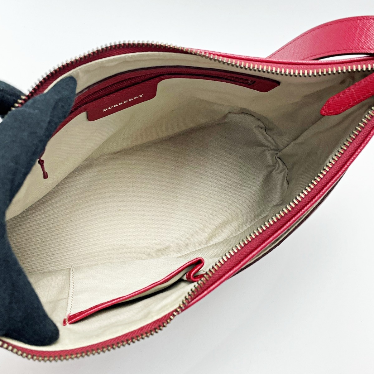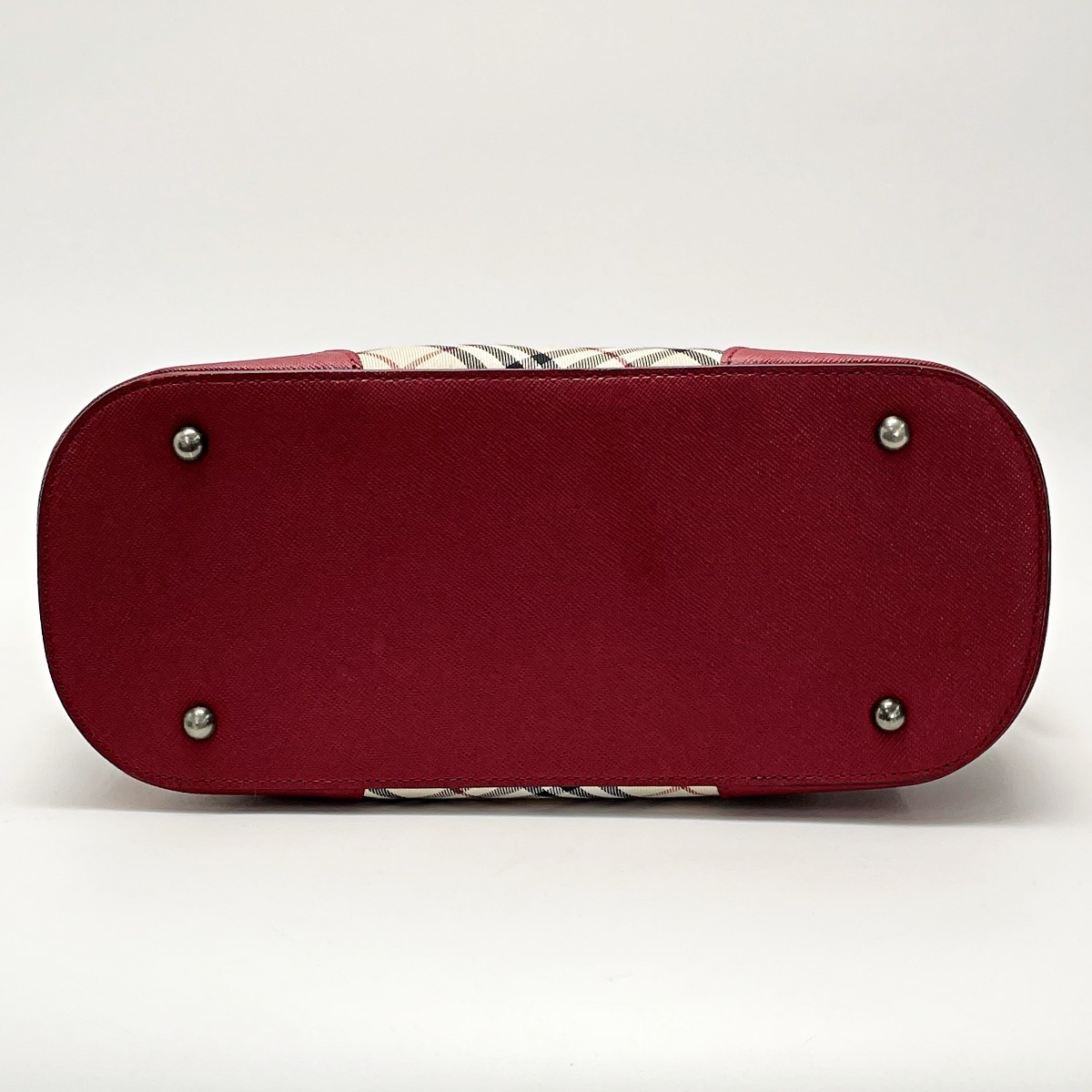 【商品名】中古 BURBERRY バーバリー ノバチェック レッド ワンショルダーバッグ キャンバス×レザー シルバー金具 レディース やや傷や汚れあり