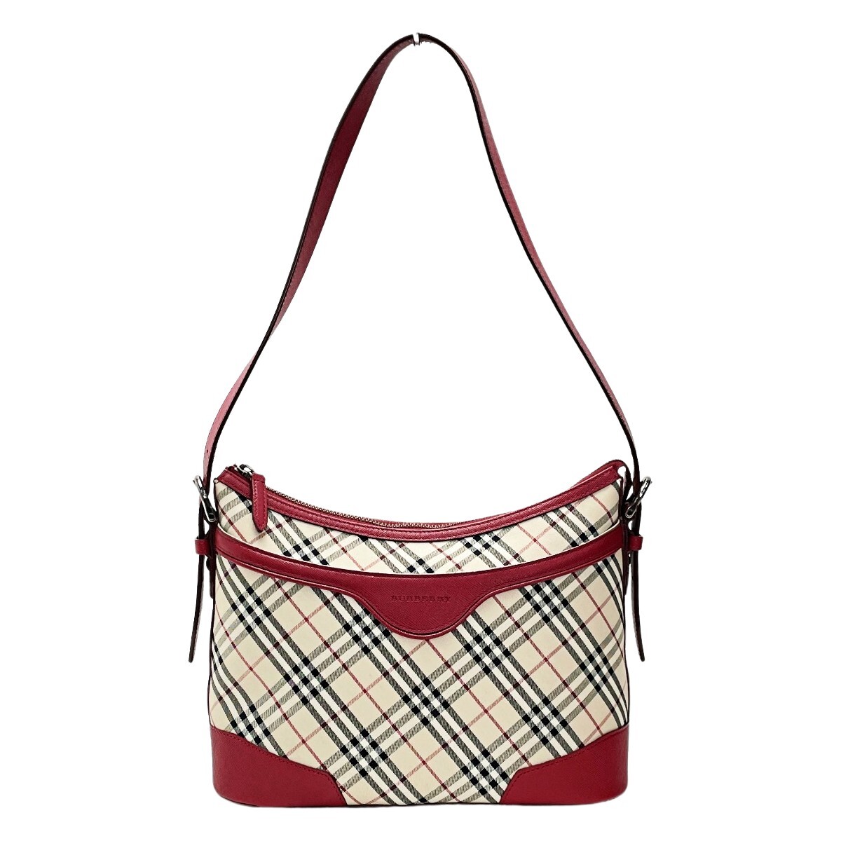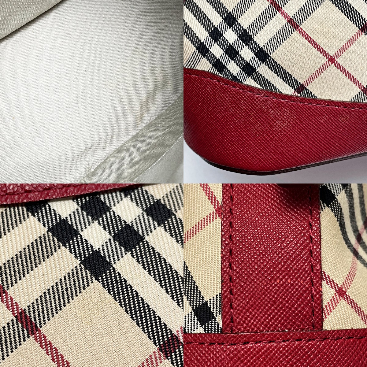 ☆☆ BURBERRY バーバリー ノバチェック レッド ワンショルダーバッグ キャンバス×レザー シルバー金具 レディース やや傷や汚れあり