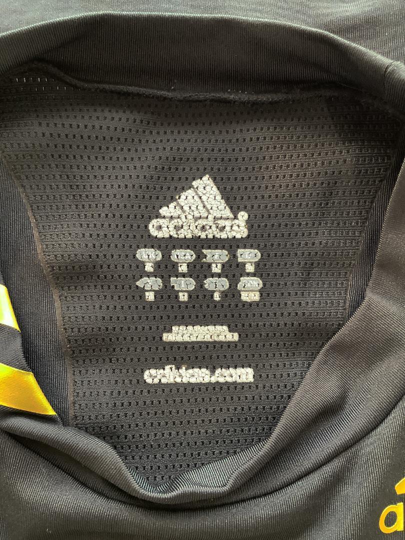襟元のロゴ、サイズ表示がひび割れております。