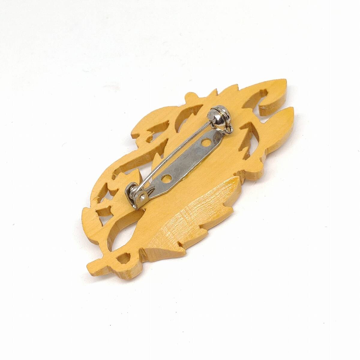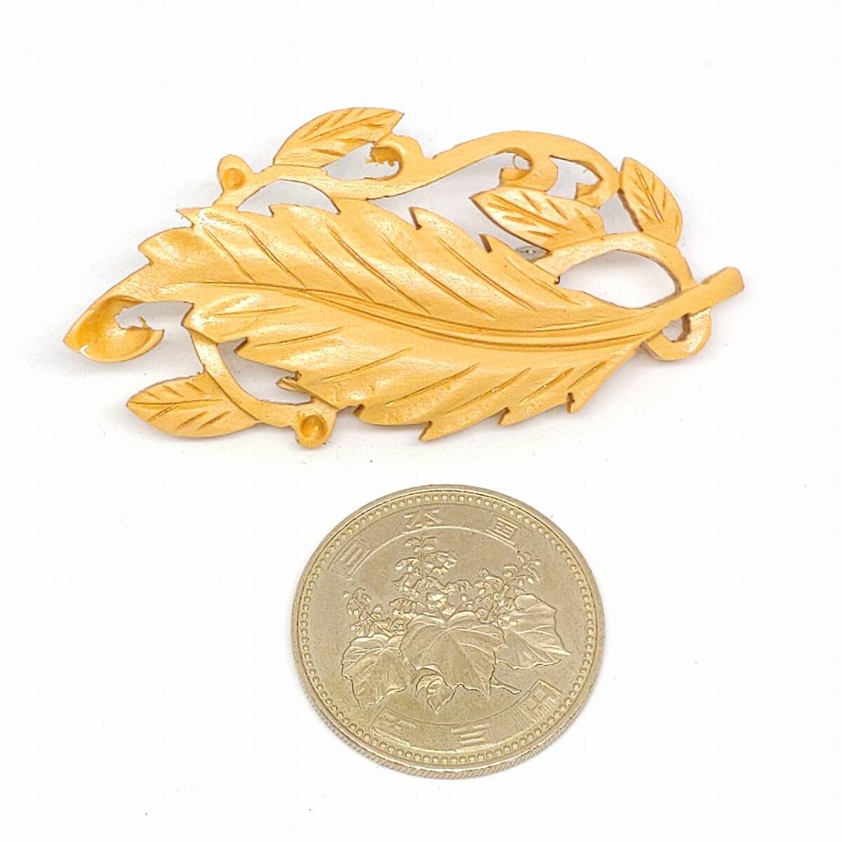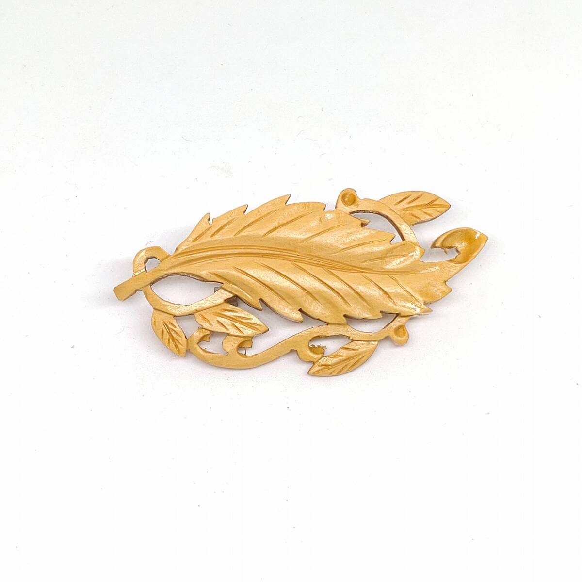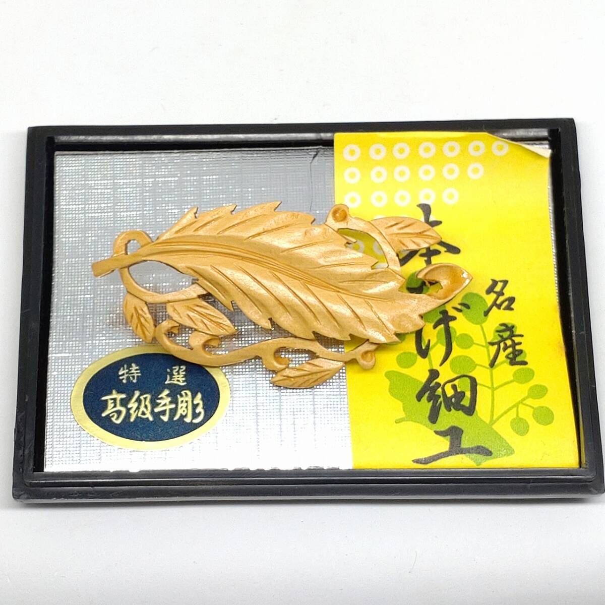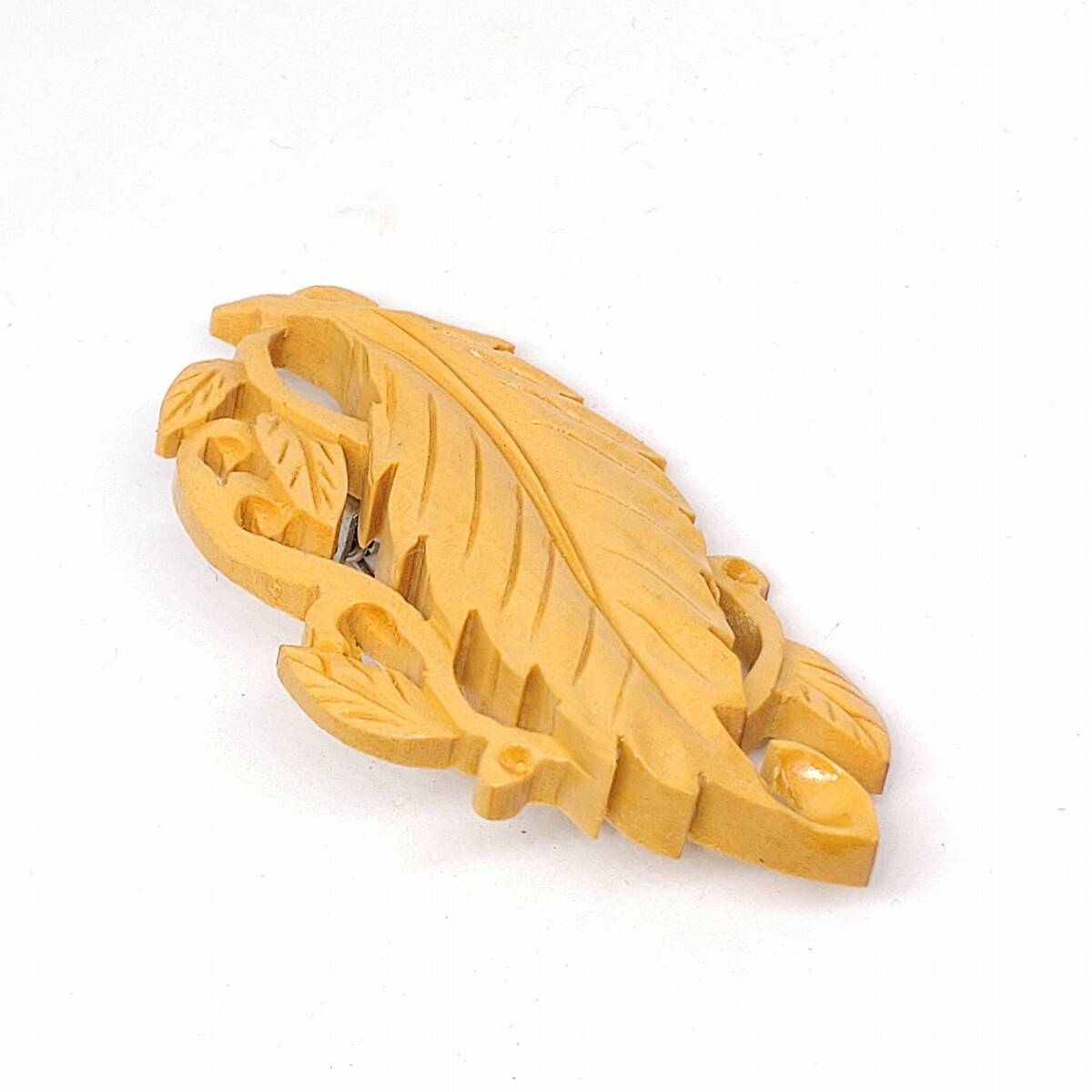 ブローチ 葉のモチーフ 名産 本つげ細工 特撰 高級手彫 和風 和装 小物 アクセサリー 未使用長期保管品  【4318】