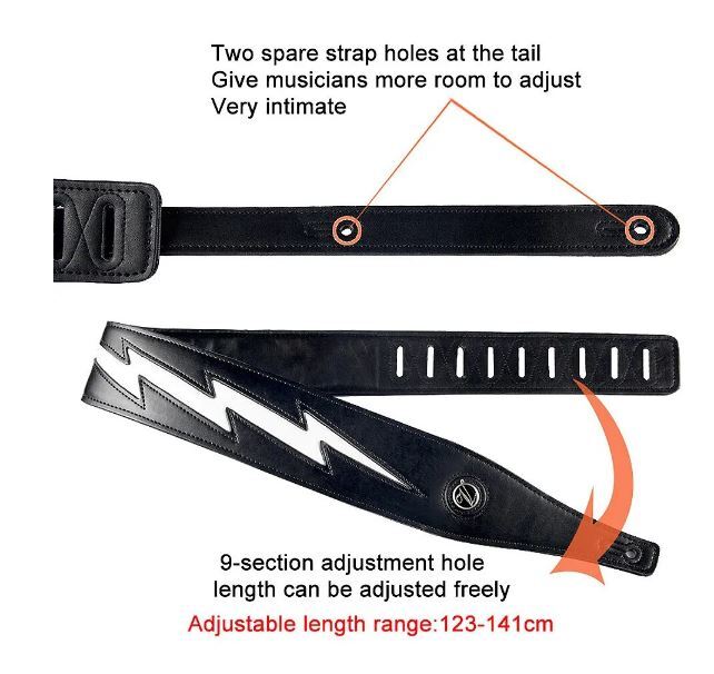• 【黒・Black lightning】Yueko-レザーギターストラップ,高品質,ユニークで快適なライトニング,エレクトリックベース,アコースティック