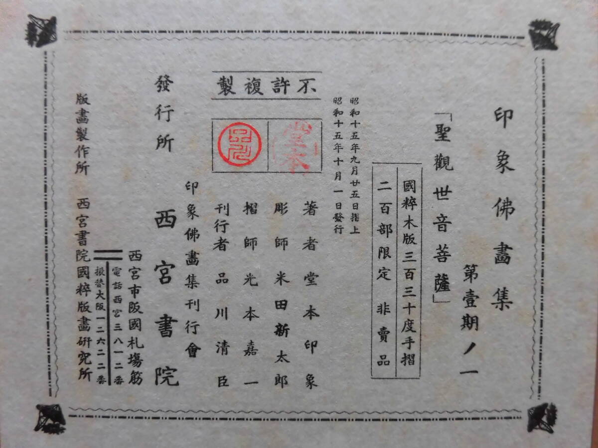 堂本印象仏画集(版画)『聖観世音菩薩』(国粋木版三百三十度手摺・二百部限定・非売品)昭和15年 40×25㎝