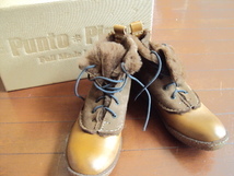 美品です。Punto Pigroのムートンブーツです。サイズは記載ないのでわかりませんが、23.5cmで購入しました。お色はブラウン系です。1度短時間履きました。箱は傷んでいます。使用品ですので神経質な方は御遠慮下さいね。ノークレームノーリターンでお願い致します。その他いろいろ出品していますので見て下さいね。