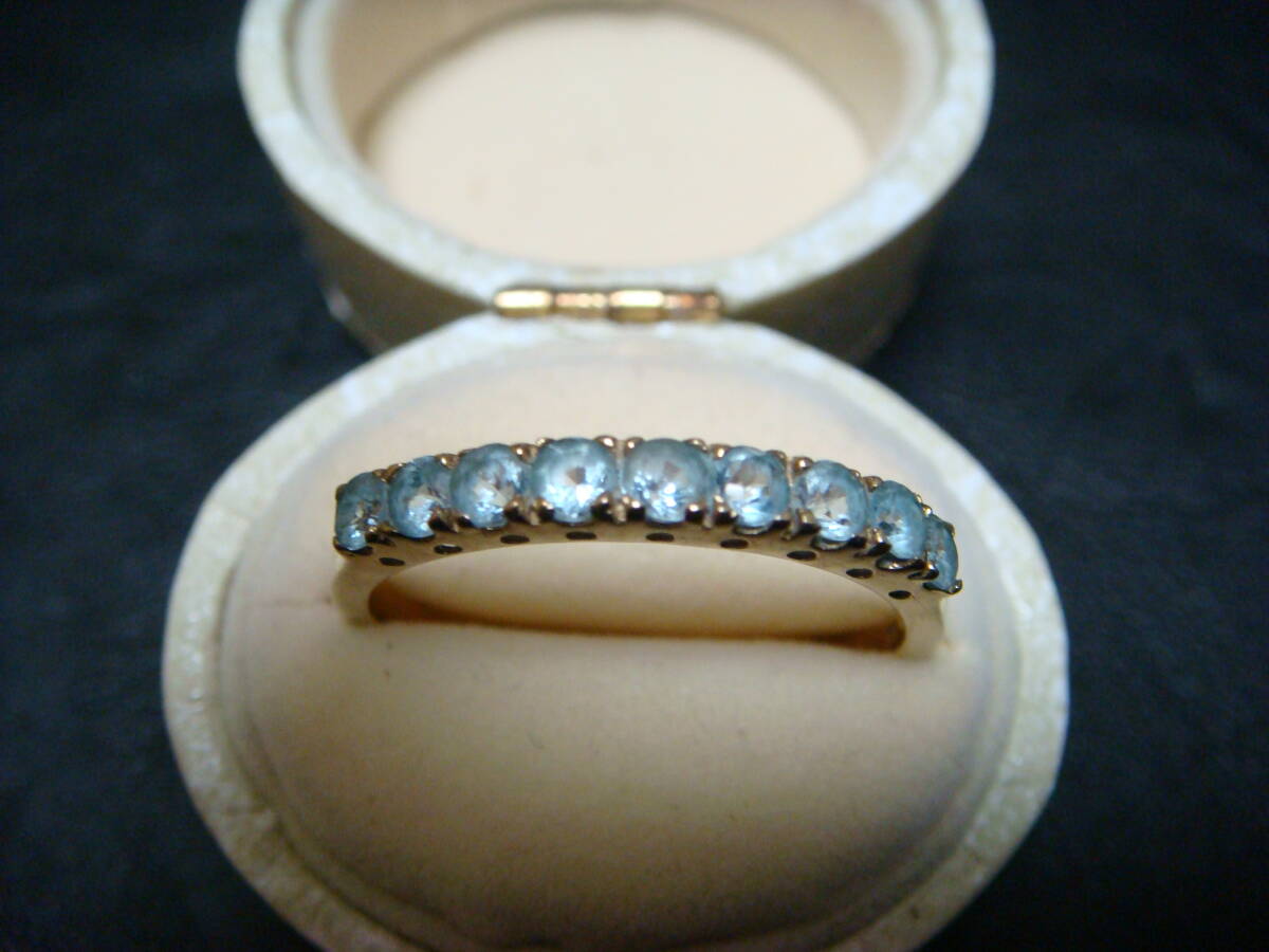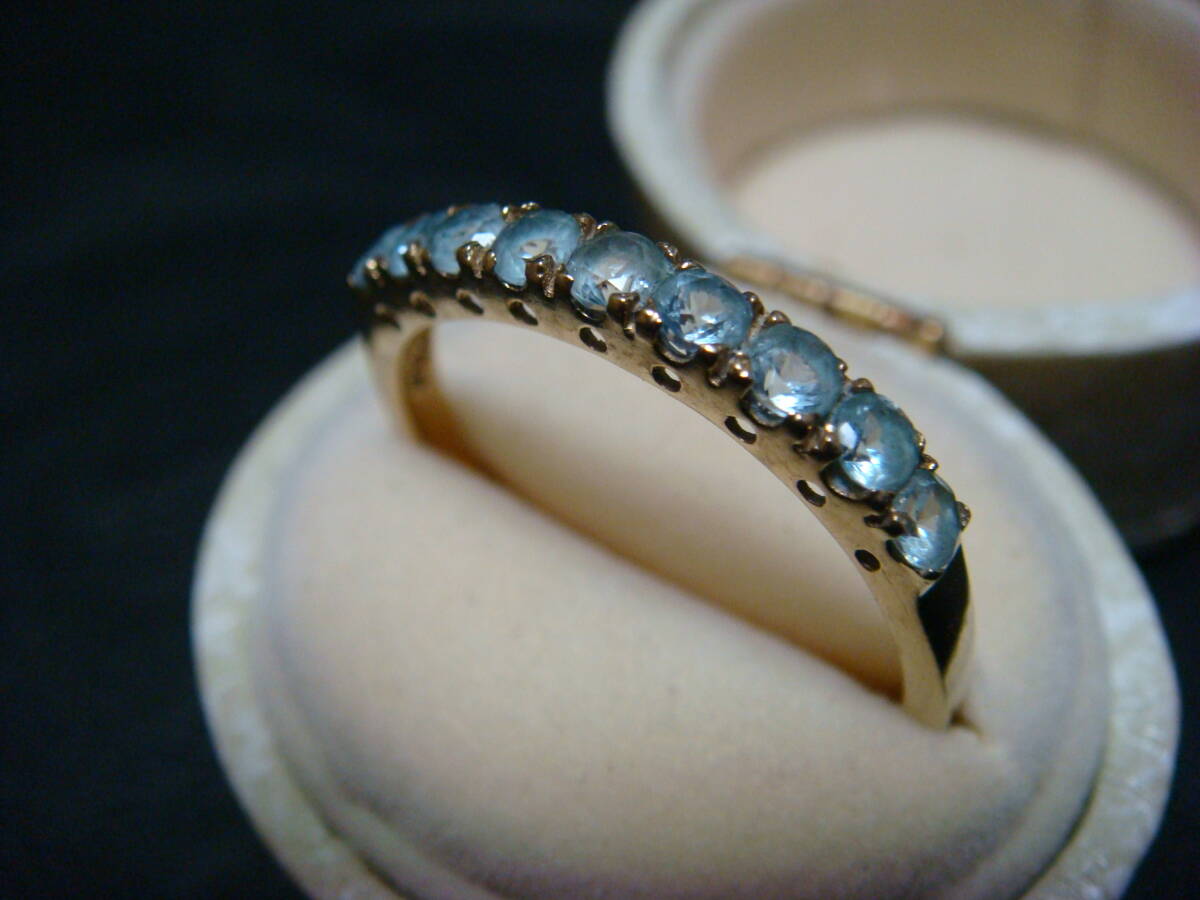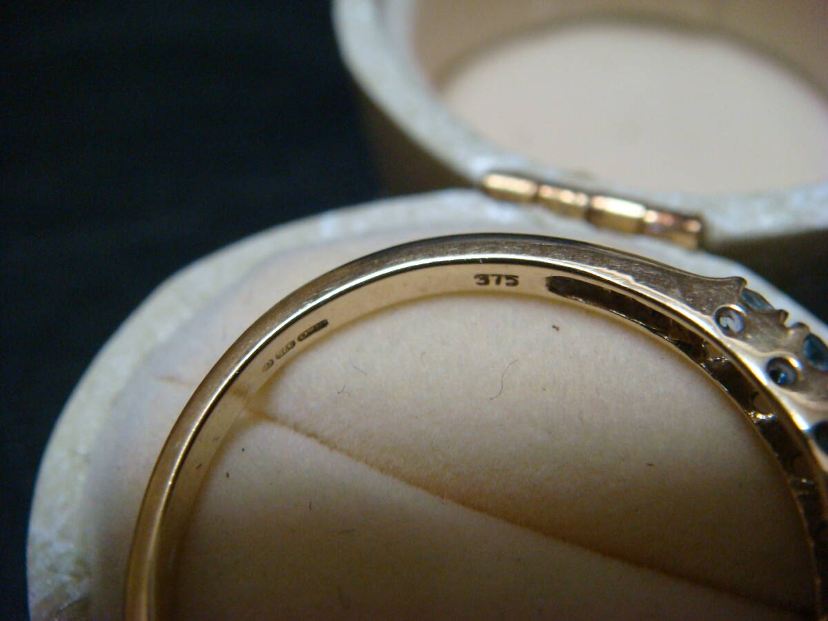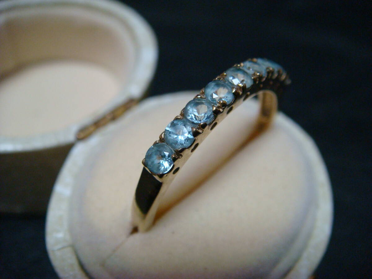 ◇英国 アンティーク 水色石 リング 9金 375◇